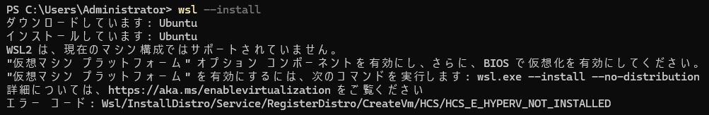 WSL2は現在のマシン構成ではサポートされていません。