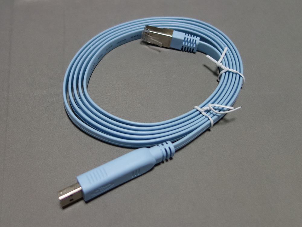 まず、本体の設定を初期したい。別途購入済みのUSBコンソールケーブルをPCに接続して準備する。