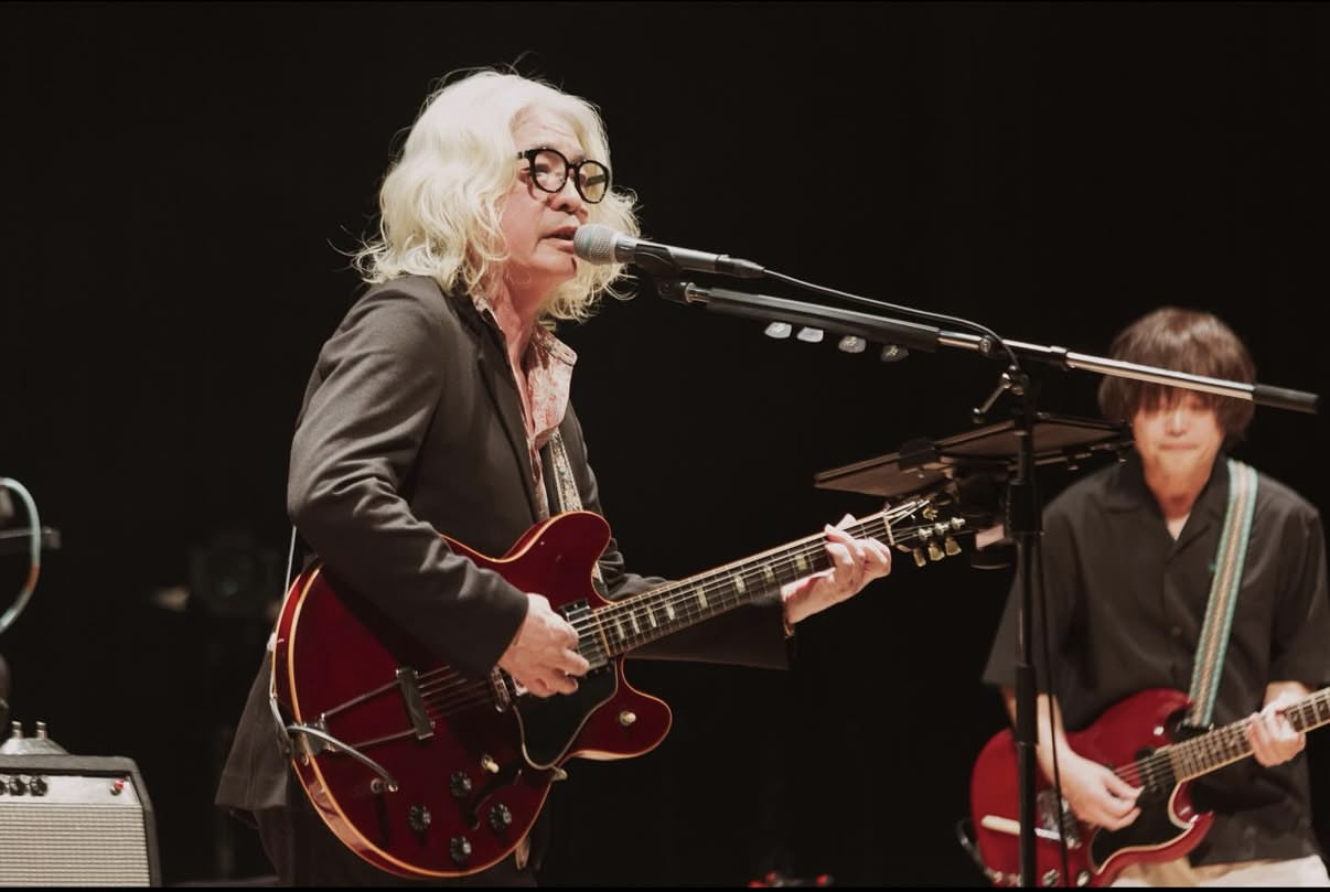 そして、直枝さんが加わり3人編成でカーネーションの曲を熱演。選曲の多くはファンだと公言する影山さん自身によるもの。