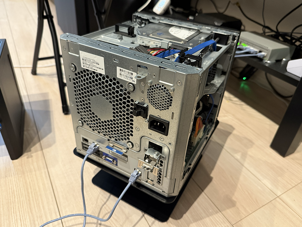 朝、仕事に行く前に接続、結線を行う。 取り敢えずは仮の結線だ。 ![]() スイッチングハブはコンパクトで、黒いボディなので黒いTV台に溶け込む。ケーブルが背面結線なのもスッキリして良い。 ![]() Gen8本体の短いACケーブルは、未使用になった元々のアライドのハブに同じ長さで一回り太いケーブルが使用されていて、それが不要になったので流用。 LANケーブルはiLOは取り敢えず未結線で、メインのLANケーブルのみ接続する。 ハブのACアダプタが小さかったので、タップへの挿し位置を調整したら、短いAC延長も不要になった。 HDMIケーブルは、RGB to HDMIアダプタに接続する。 ![]() ![]() 結線が終わったので、Gen8を起動。 UEFI画面は表示されず、Windows起動のグルグルからだが、無事に起動して画面表示された。 細かい構築や、設置環境の微修正は別日に行うことにする。 Microserver Gen8を離れに設置するために購入した備品を移送。 開封・開梱する。 ![]() 用意した備品は、短いACケーブル、AC延長ケーブル、スイング式LANケーブル、HDMIケーブルの4点。 ![]() ![]() ![]() スイッチングハブは、梱包箱は小さくてびっくり。さらに中身もコンパクト。メタルボディで質感も悪くない。 ACアダプタも非常に小さく、想像以上に良い印象だ。 TP-LINKと悩んだが、Buffaloにしておいて良かった。 バッファロー 8ポート Giga対応 LANハブ LSW-8GSE/NBK 2,880円@amazon.co.jp ELECOM 電源タップ 0.1m 1個口 スイングプラグ ホワイト 3本 T-ADR1WHX3 836円@amazon.co.jp AINEX AC電源ケーブル 極細ストレートタイプ 0.5m ACP-05S-BK 424円@amazon.co.jp ELECOM LANケーブル CAT6A 1m スイング式 スリム ブルー LD-GPATSW/BU10 676円@amazon.co.jp Microserver Gen8の離れへの移設を鑑み、細かい必要備品を購入する。 まずハブから。現在使用しているのはアライドの5ポートのもの。iLOのポートも加味すると、1ポート足りないため、8ポートのハブを物色。 TP-Linkの8ポートが安くて金属筐体で良さげだったが、もう1機種、同じような価格で金属筐体のモデルがBuffaloにあった。 LANコネクタの向きがTP-Linkが前面で、Buffaloは背面という違いがある。 一長一短だが、現在のアライドの向きと反対になる、背面コネクタのBuffalo製品を選定した。 ![]() その他はケーブル類。50cmの電源ケーブル、ACアダプタ用の10cmの延長電源ケーブル、極細のLANケーブルを手配した。 ![]() ![]() ![]() 極細LANケーブルはCAT6の青いELECOM製が割高なので、それよりも安い、6Aのスイングコネクタのケーブルにした。 Backupサーバとして使用していたGen8を、離れに引っ越すことにする。 引っ越す前に、今回離れように購入した、RGB to HDMI変換アダプタがきちんと動作するか確認する。 このアダプタはUSBから5V給電して動作するタイプのようだ。 ![]() ![]() Gen8に接続して、HDMI経由で結線すると、モニターにきちんとFHDの画が表示された。 問題ないようだ。 ということで、HDD未搭載の状態で、手持ちで離れに移送。 移送後は、PCIブラケットカバーを装着して、これも事前に購入してあった、スタンドの上に載せてみる。 フィット感は問題ない。 ![]() ![]() ![]() ![]() ![]() TV台と机の間に入れてみたが、これも問題ない。 ![]() 必要なケーブルの長さも確認する。 LANケーブルは1m、ACケーブルは50cmもあれば問題無さそうだ。HDMIは手持ちの余り品から1.5-2mくらいのものを用意する予定だ。 Microserver Gen8を離れのNASとしてセットアップする。 もっさりするので少し古いOSに変えようか・・とも思ったが、最新のWindows Server 2025にすることにした。 RefusでインストールUSBインストールを作成。過去の履歴の通りMBRで設定する。 インストール先のSSDは一旦取り外して、diskpartでパーテーションを削除した。 インストールUSBをMicroserverの背面USB3.0ポートに挿して、起動時にF11を押してブートマネージャを起動する。 3のUSB Keyを選択するが、起動に失敗する。何度かやっても同じ。Refusの設定も間違えていない。 ダメ元で・・と、フロントのUSB2.0ポートにUSBを挿したら、無事に起動した。 USB3.0ポートは何故使えないのだろう・・。 Windowsのインストールは、何事もなく完了。 起動後、Matroxのドライバと、二つのiLOのドライバを導入。 Intel INFドライバは、少し様子を見てから導入を判断したい。 INFを導入しない方が、動作が早いような気もするためだ。何とも言えないが・・。 事前に購入してあった、Microserver用のスタンドを組み立てる。 ![]() ![]() ![]() 元々はモニター用のスタンドのようだが、TV台と机の隙間に丁度入り、横幅、奥行きともにMicroserverにフィットしている。 ![]() ![]() ![]() 組み立ては簡単で、天板と底板を柱にネジ留めするだけ。組み立て用の六角も付属していた。 隙間へのフィット感も問題無さそうだ。 iLO4の管理画面でデグレの表示があり気になっていたので、過去の記録も確認して、解消する。 デグレ表示の解消は大したことはなく、以下の手順に沿って進めれば消えた。 ・[iLO Health]->[iLO Health]のリンクを開く ・[Format Embedded Flash and reset iLO]を実行 ![]() 調べていたら、iLO4