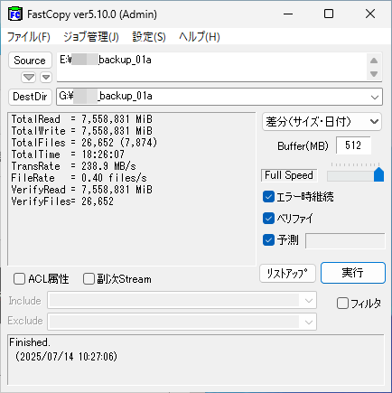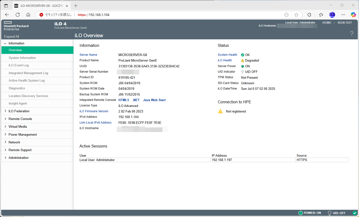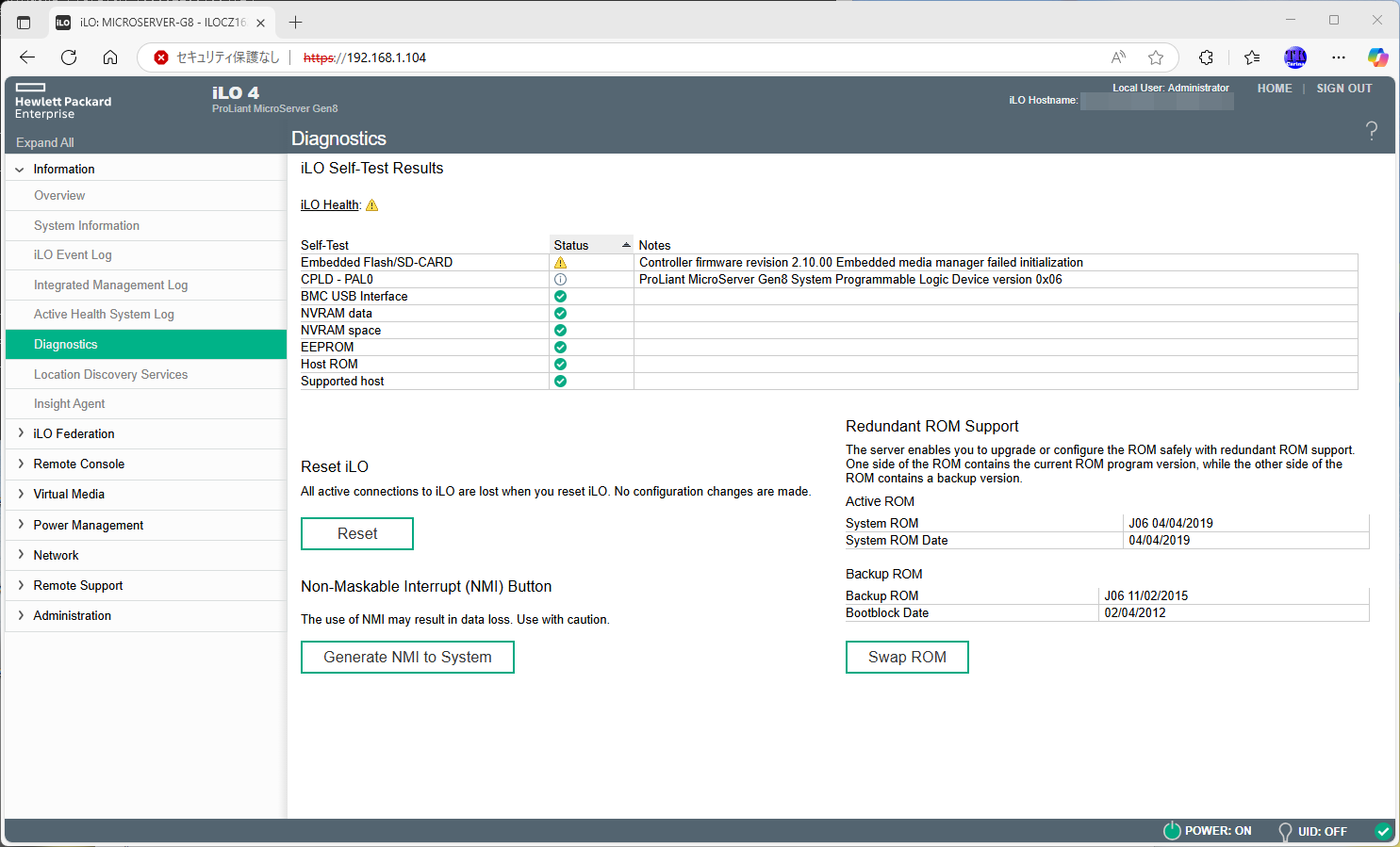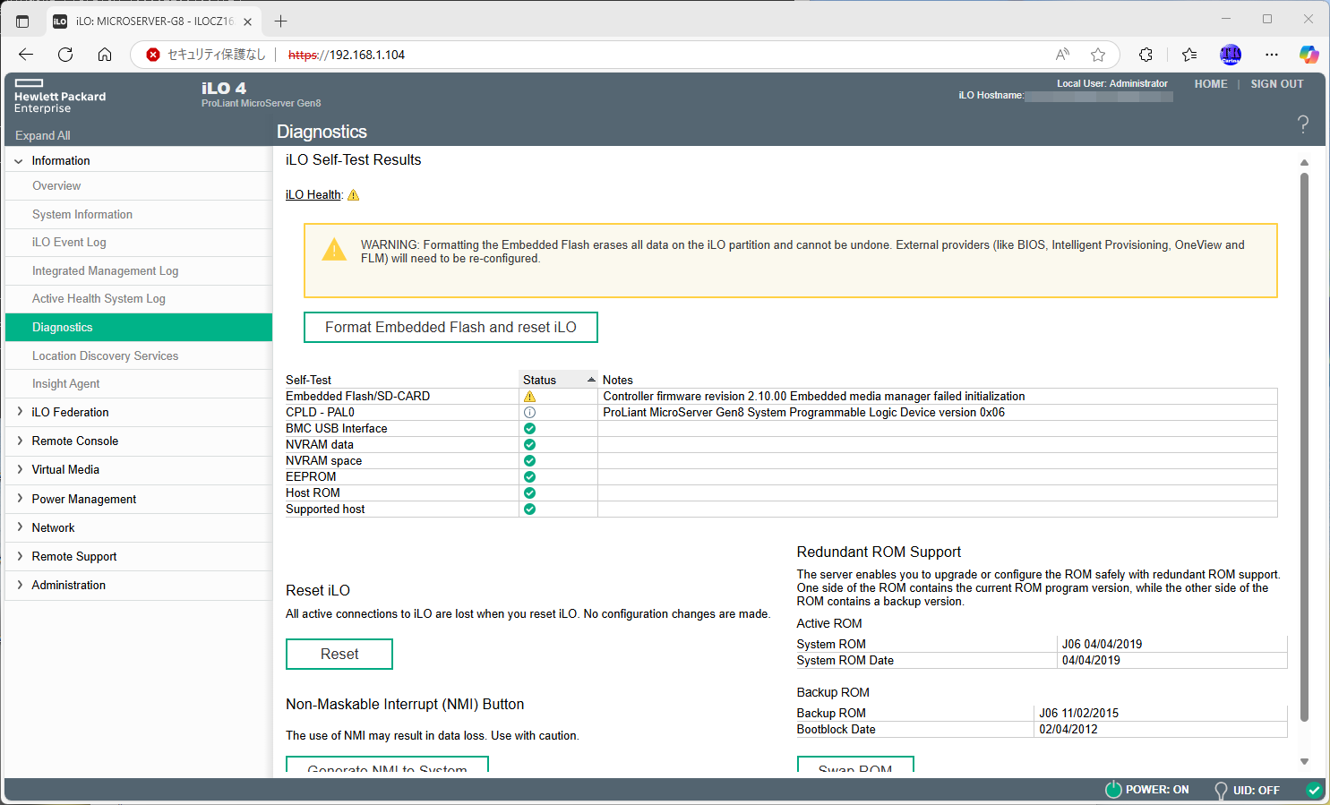 バックアップサーバを早くも更新。今回、二世代ぶりにhp MicroServerに先祖返り。先祖返りと言いつつ、世代はGen8となり、本格サーバの機能が満載で大幅グレードアップ。 離れのハブに接続するLANケーブルの識別のためにタグを貼付。 以前買ったものを利用したが、カラバリは5色。10色くらいあると助かるのだがな・・。 ![]() ![]() また、昨日までに3本のHDDにマイグレーションが終わったGen8サーバの共有設定を行う。 3つの共有設定を施し、Macからファイルアクセスができるようにする。 ![]() 離れに設置したMicroserver Gen8のデータコピーを続ける。 24TBが完了した後は、離れでTB5ドックに接続されていたUSB HDDのデータを、2台のお古のHGSTの8TBハードディスクにコピーする。 ![]() コピーはPro版ではないFastCopyで進める。 USB3.0のポータブルHDDからのコピーで、80MB/s前後のスピードが出ている。USB3.0なら、そんなものだろう。 コピー後のHDDには結構空きがあるので、もう少しメインファイルサーバからファイルを持ち込んでも良さそうだ。 3代目のBarracuda 24TBを、離れに持ち込み、Microserver Gen8に実装する。 ![]() ![]() CDIによるSMARTの確認と、CDMによるベンチマークも実施する。 ![]() ![]() そして、離れに退避保管してあった、16TBの自分撮り動画のバックアップHDDの中身を、FastCopyでコピーする。 ベリファイも入れるので、16TBのコピーで2日弱を要する。 ![]() 転送スピードは平均240MB/s弱でているので、十分なスピードだ。 ところで、改めてGen8のWindows Updateを実施してみたが、凄く時間が掛かる。 ダウンロードが特にスローモーだ。これだと、ちょっと実用には厳しいくらいの遅さだ。 まあ、離れの隠居NASとしての余生なので、これでも使えないことはないが。 離れに移設したMicroserver Gen8のセットアップ作業の続き。 この日は、iLOと本体LANのアドレスを振り直す。 ![]() まず、iLO。 Mac miniのドックの空きのLANポートとiLOポートを直結して、同じネットワークアドレスを振ってブラウザからiLOの管理画面にアクセス。 が、開けない。FireFoxだとうまくいかない。 Safariだと、崩れたサインイン画面で、eMMCがデグレしているメッセージが表示される。 サインインもできない。 ![]() 仕方なく、Windows PCからアクセスしたら、あっさり成功した。 デグレはやはりしているようで、いつもの手順で一度リセットして、デグレを解消する。 ・[iLO Health]->[iLO Health]のリンクを開く ・[Format Embedded Flash and reset iLO]を実行 ![]() ![]() ・[iLO Overview]->[iLO Health]のリンクを開く ![]() ・[Diagnostics]->[iLO Health]のリンクを開く ![]() ・[Format Embedded Flash and reset iLO]を実行 ![]() そしてその後、iLOのIPアドレスを振り直す。 ![]() ![]() 最後は本体LANポートのIPアドレス。こちらはWindowsにサインインして普通に変更する。 離れのLANは、上位のルータだかスイッチだかから、192.168.10.0/24のアドレスがDHCPでリースされている。ゲートウェイは192.168.10.221だ。 DHCPのリース範囲は不明だが、おそらく192.168.10.10からなので、50あたりまでなのでは? ということで、Gen8の本体は192.168.10.100、iLOは192.168.10.101にした。