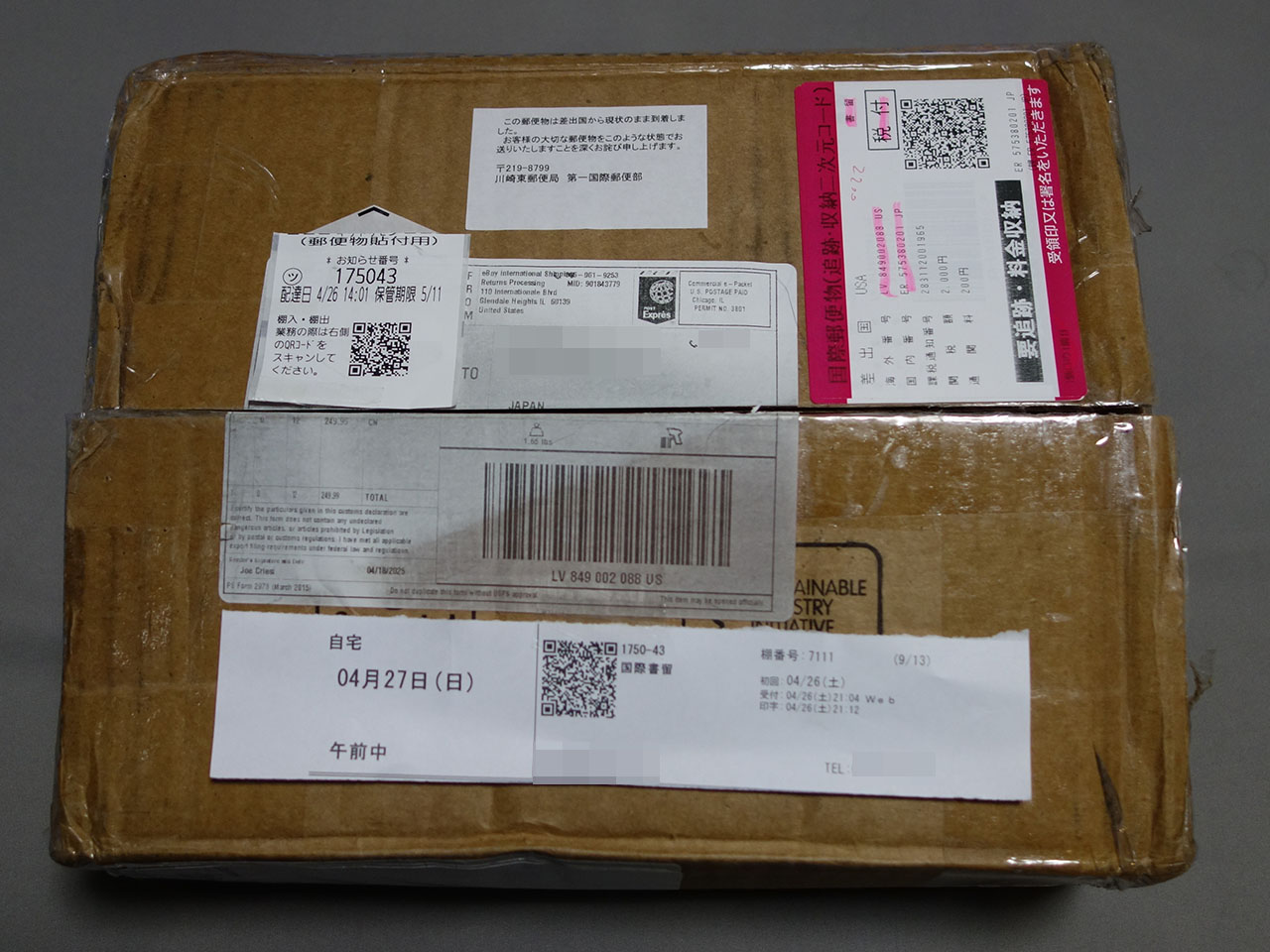 国内配送はゆうパックで、予想通り消費税が徴収された。