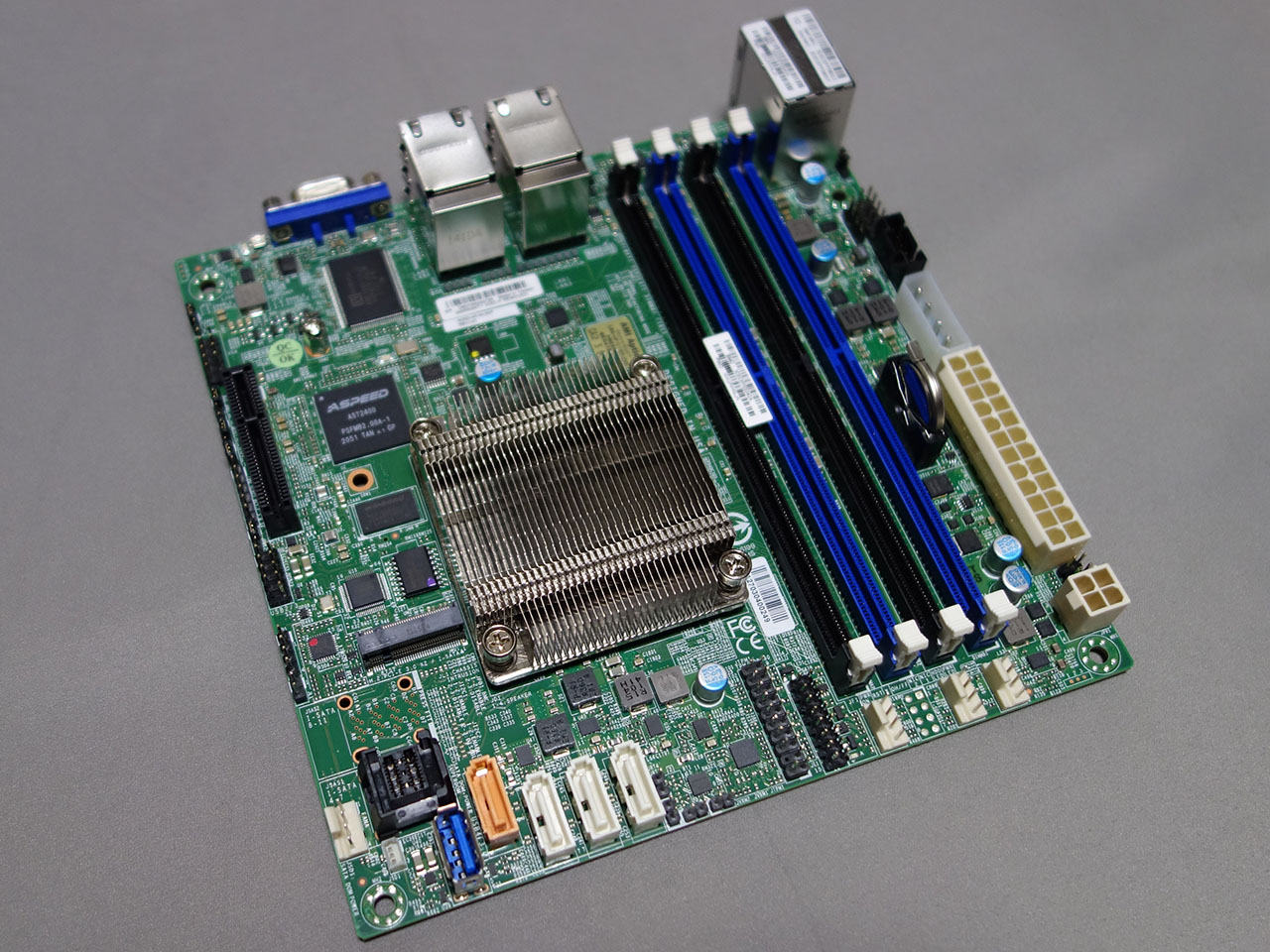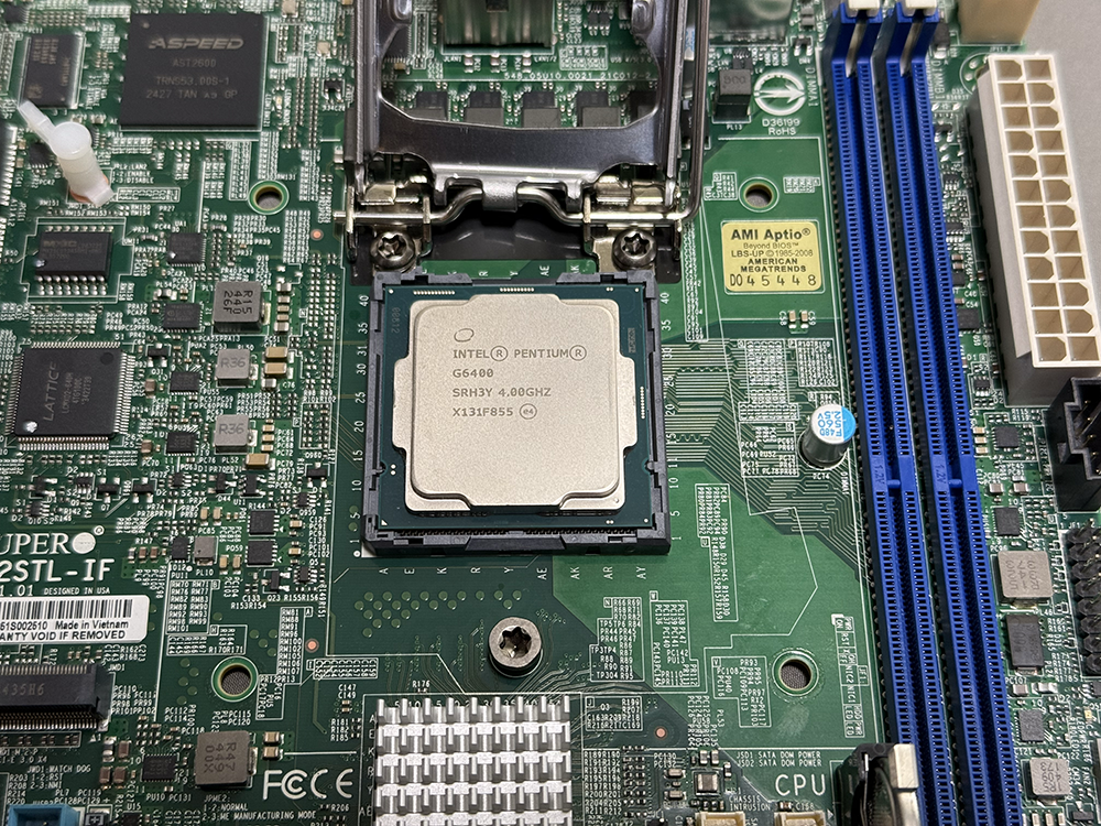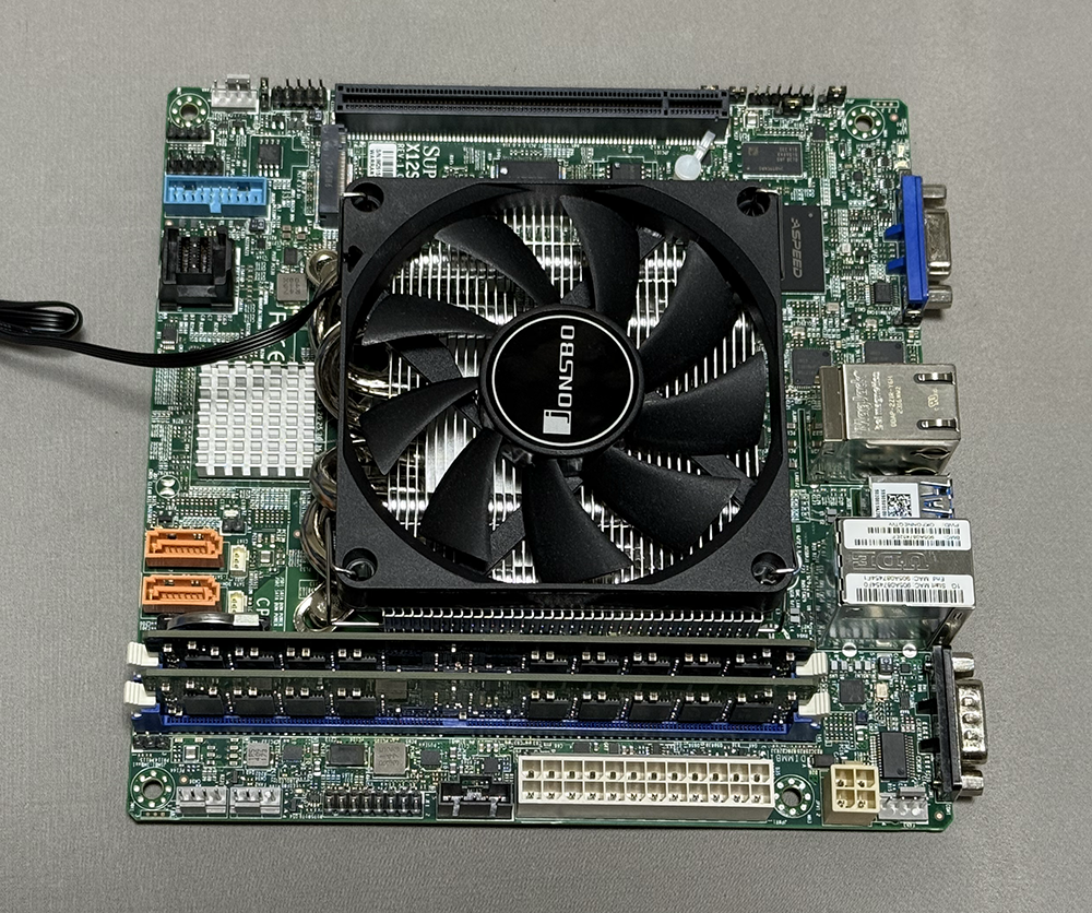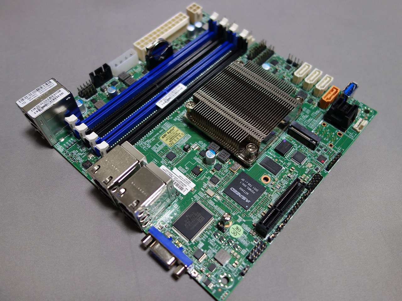 IPMIのチップがAST2400と、他の2製品の2600と比べると古いのが気になるが、CPUを別途手配する必要が無いし、ヒートシンクも実装されている。