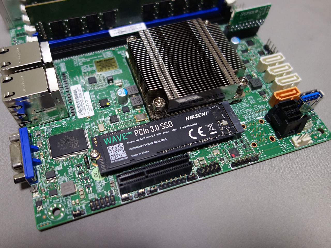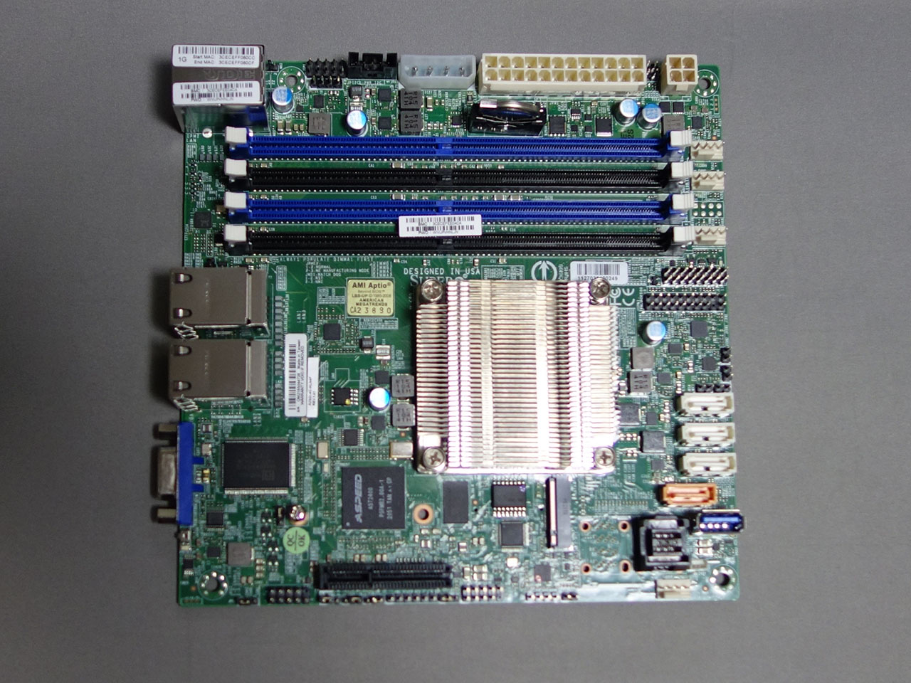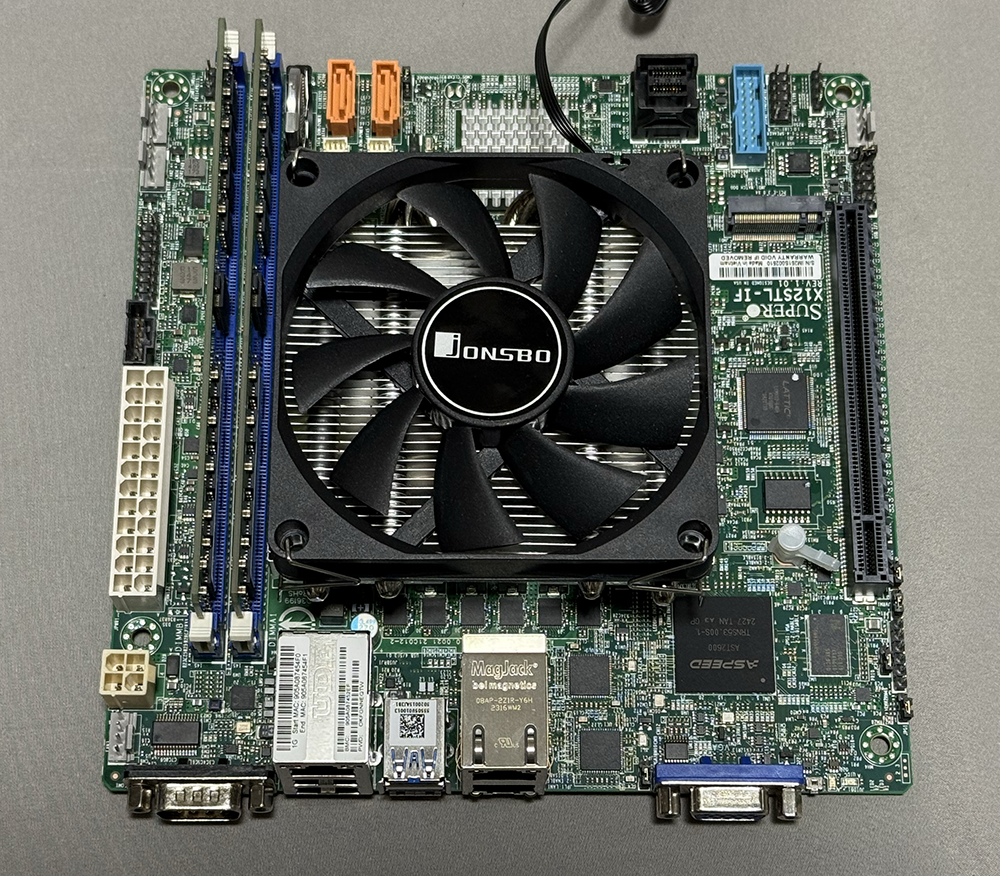 IPMIのチップがAST2400と、他の2製品の2600と比べると古いのが気になるが、CPUを別途手配する必要が無いし、ヒートシンクも実装されている。