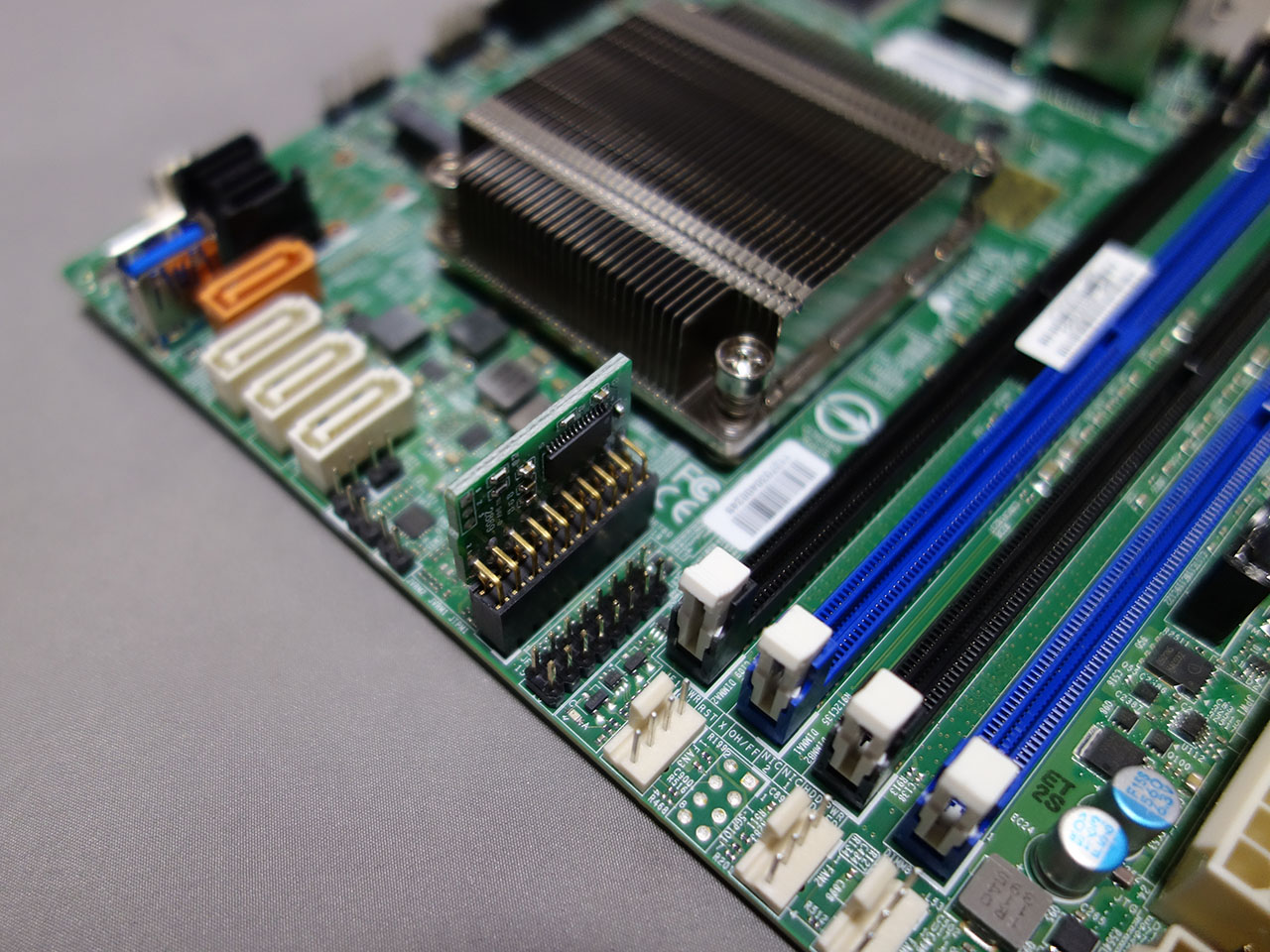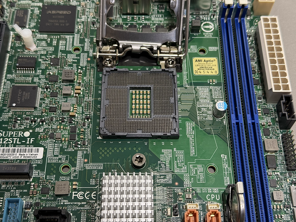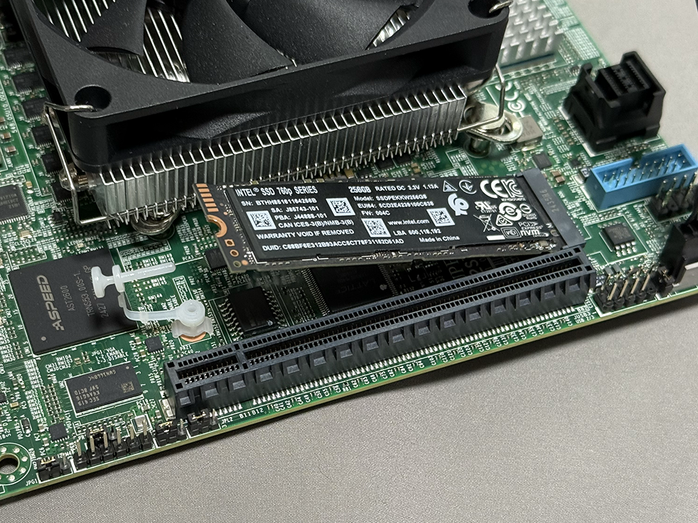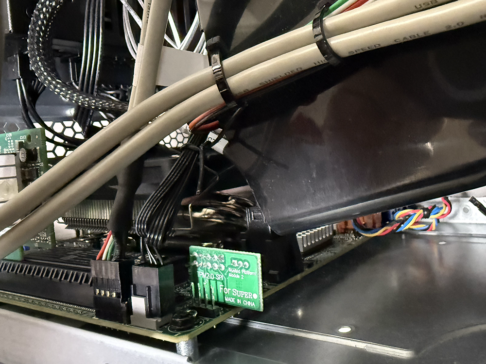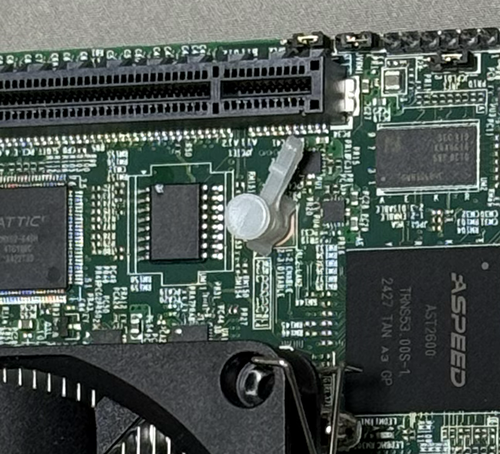 TPMヘッダーはきちんとSupermicroの印字があるものだった。多分、正規品だろう。マニュアル見て実装位置に挿す。