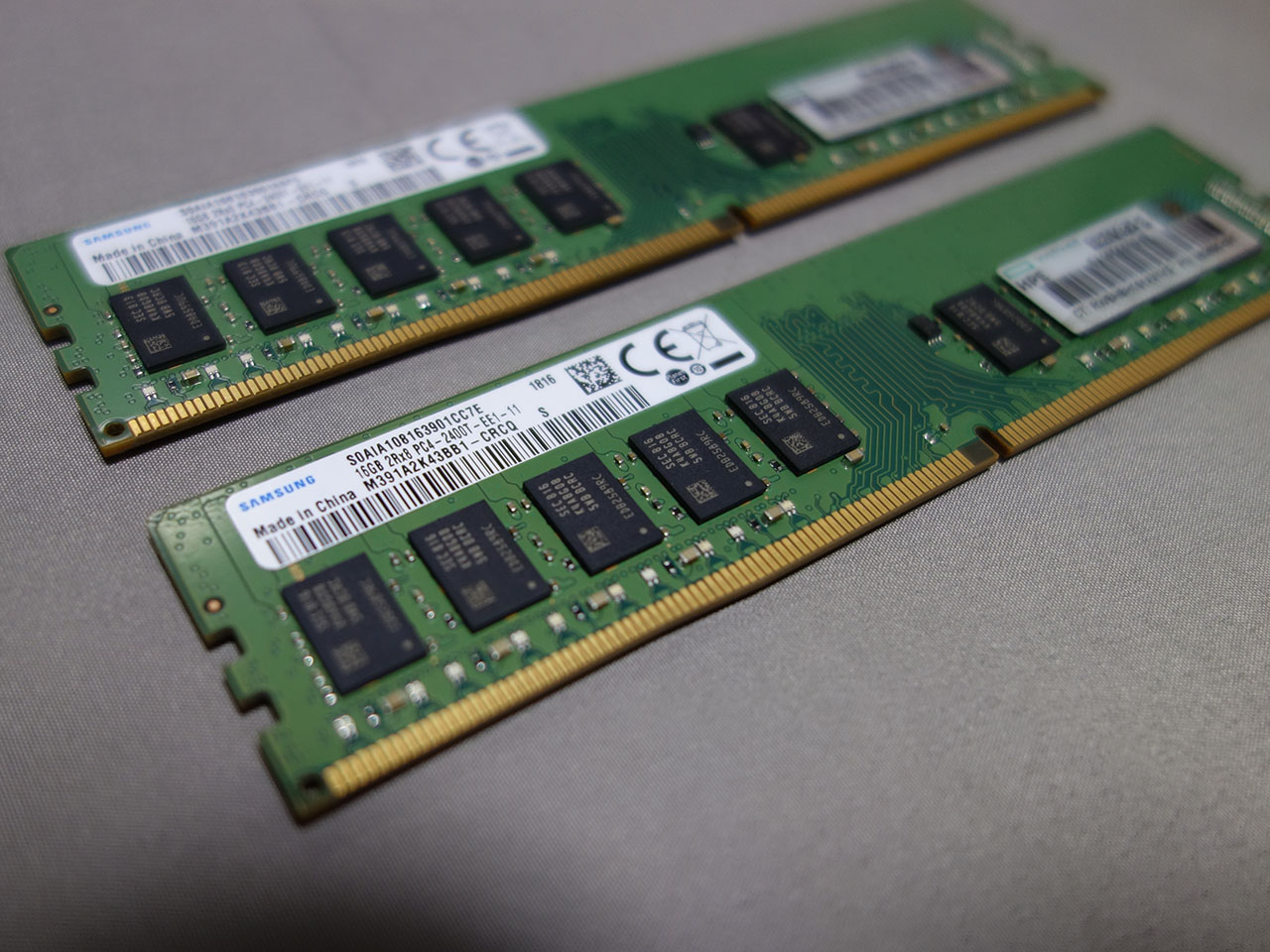 メモリは16GBを2枚。正しい実装位置があるので、マニュアルを見て確認する。