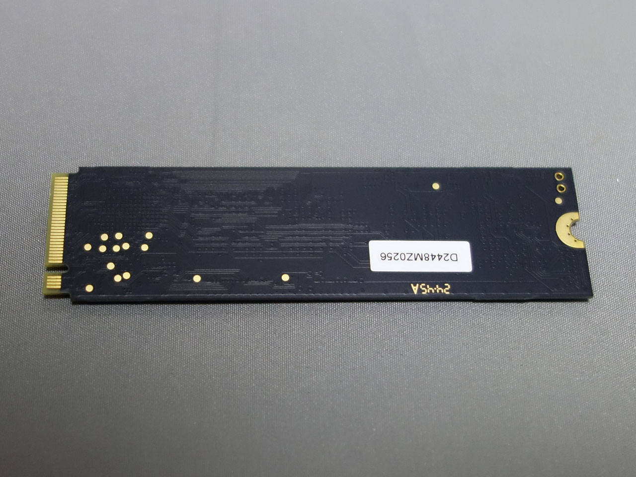 最後にSSD。アリエクで買ったHIKSEMIの256GB品だ。片面実装のシンプルな構造。固定ネジはマザーボードに装着済みで、これを使用して固定する。
