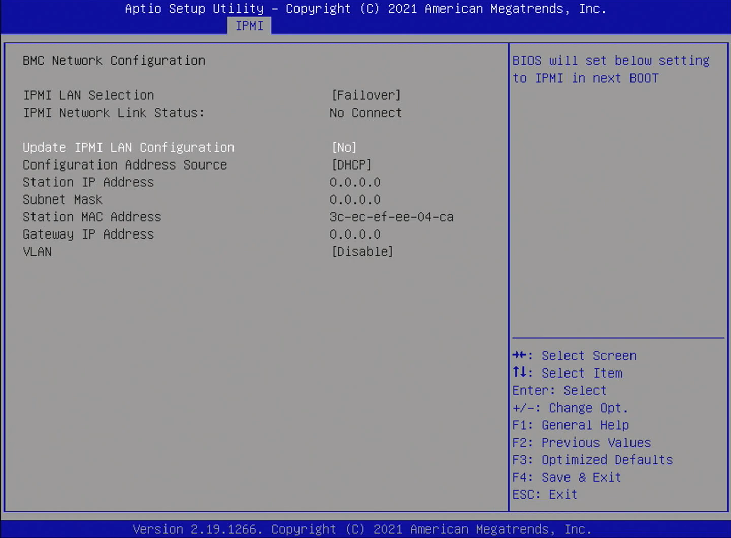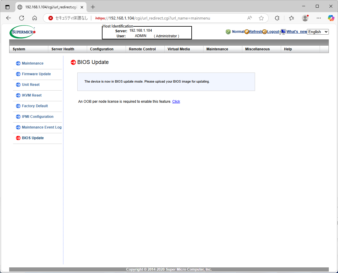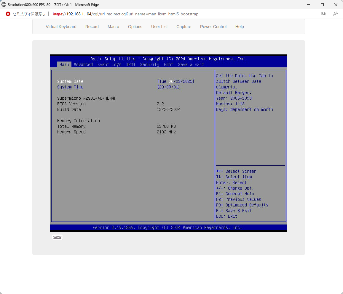 まず、IPMIのIPアドレスを変更する。UEFIセットアップから行う。
