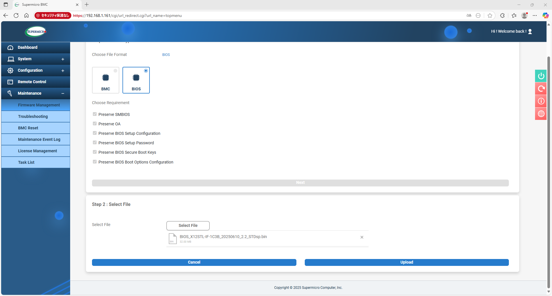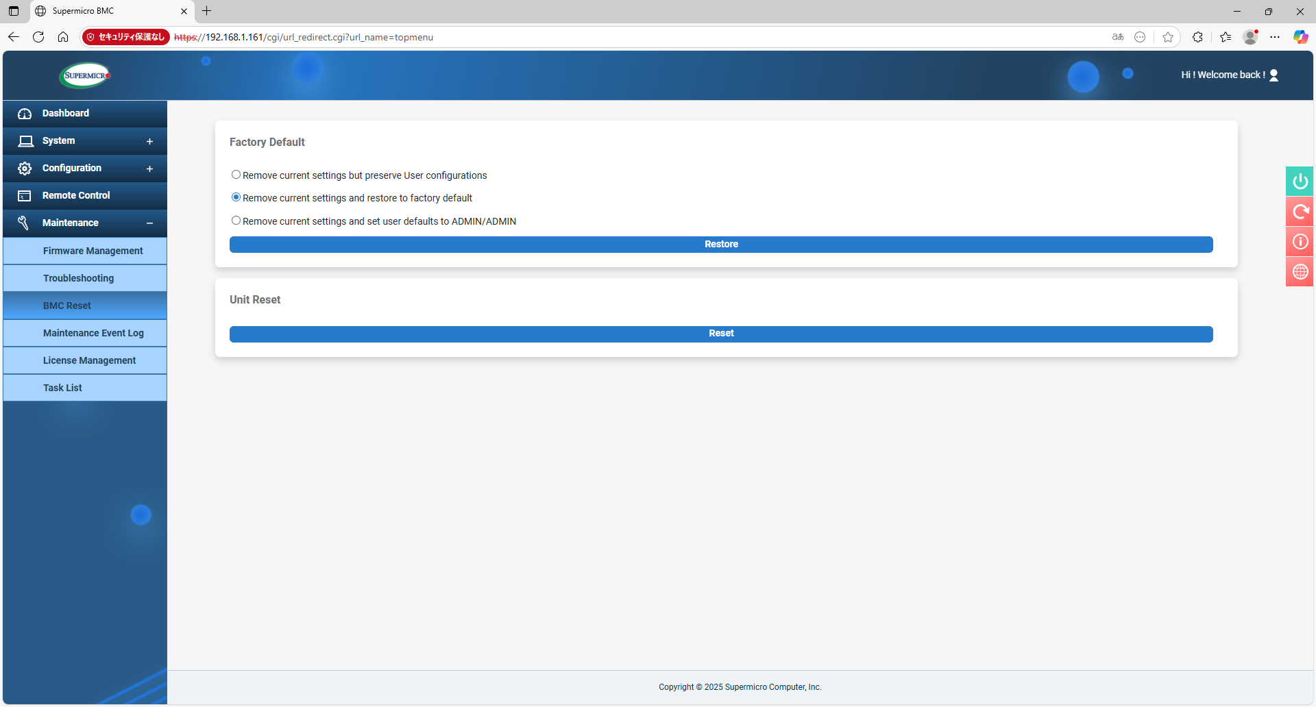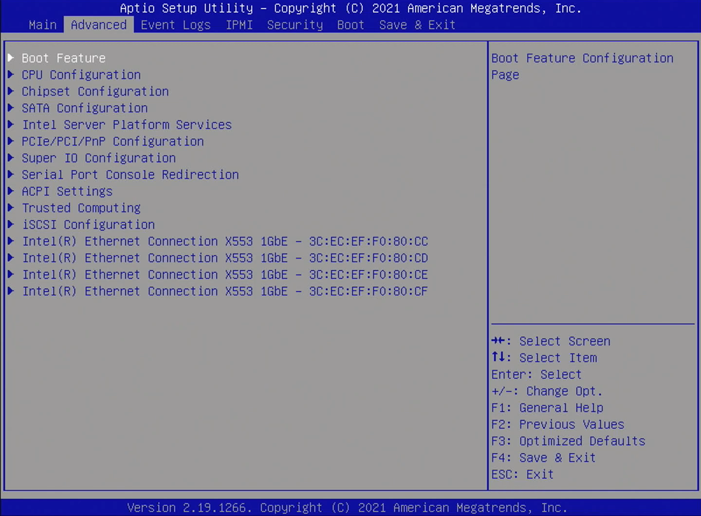 まず、IPMIのIPアドレスを変更する。UEFIセットアップから行う。