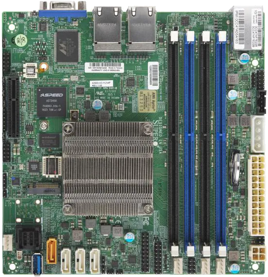 少し世代の古いApollo Lake世代のサーバ向け(Denverton)だが、産業用らしく、ECCメモリ、Quad LAN、8xSATA、IPMI2.0と、テンコ盛りだ。