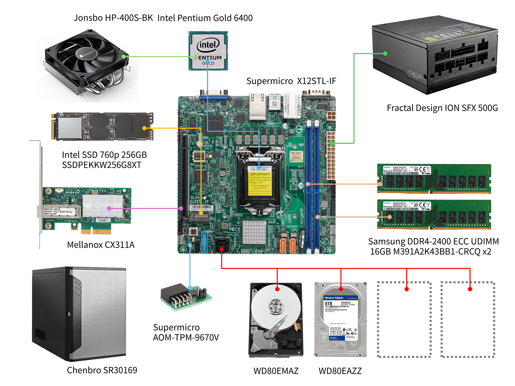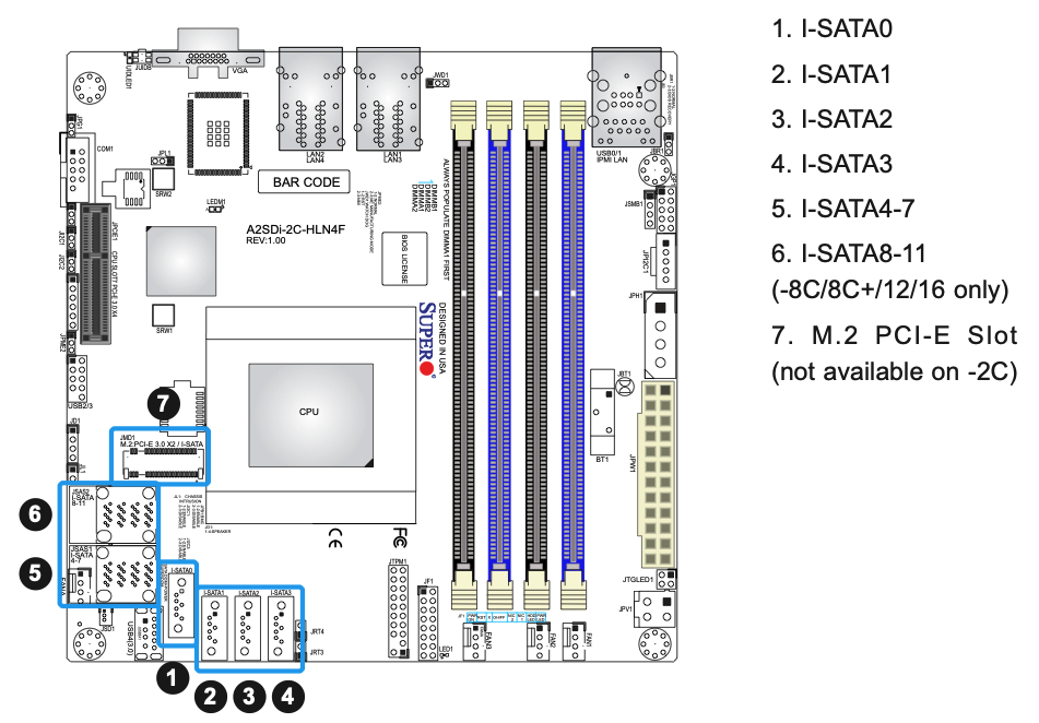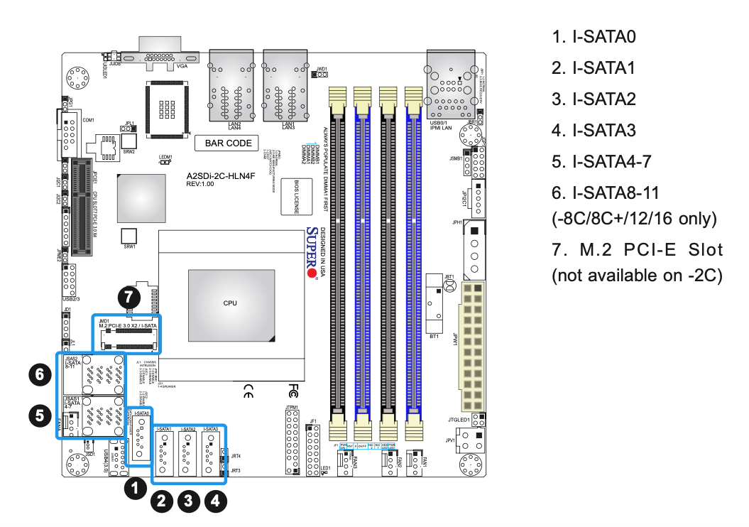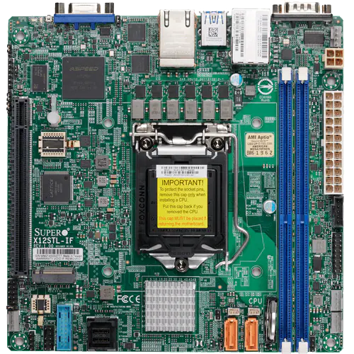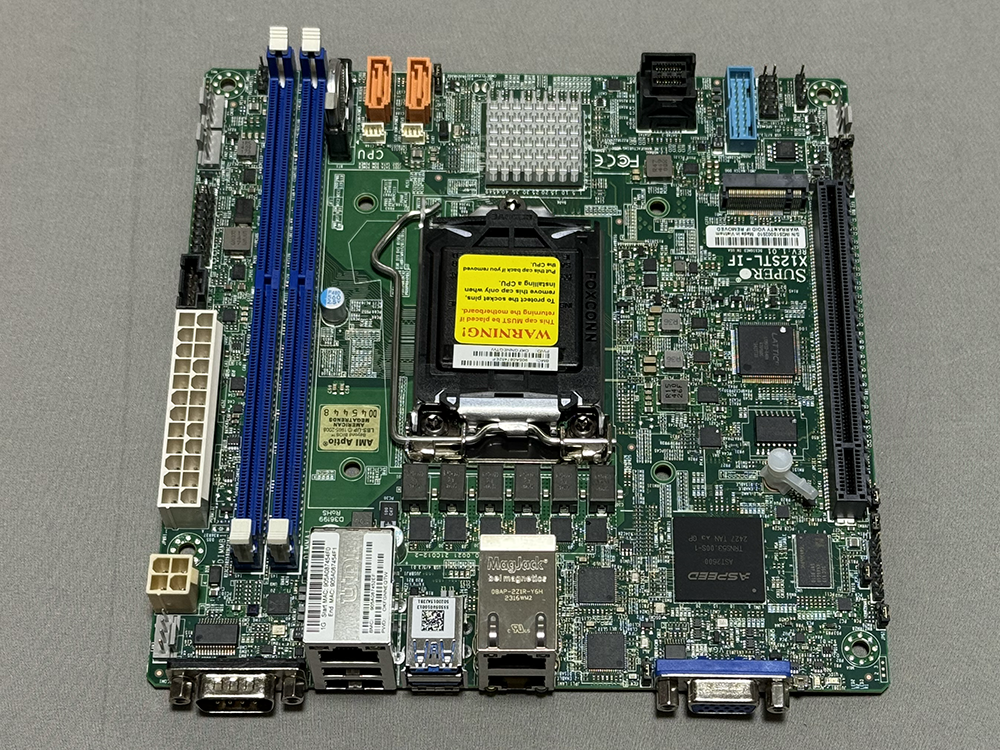 Xeon-E2300か、10thのPentiumに対応していて、独立した2ポートのSATAと、MiniSAS HD経由の4ポートのSATAもある。