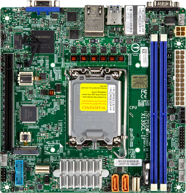 Intel 12th-14thのデスクトップ向けプロセッサが使用でき、チップセットはワークステーション向けのW680を採用している。SATAがx8もあるのが特徴で、BMC対応でASPEED AST2600チップも搭載され、専用マネジメントポートが実装されている。ただ、通常のLANは2.5G対応が一つだけだ。