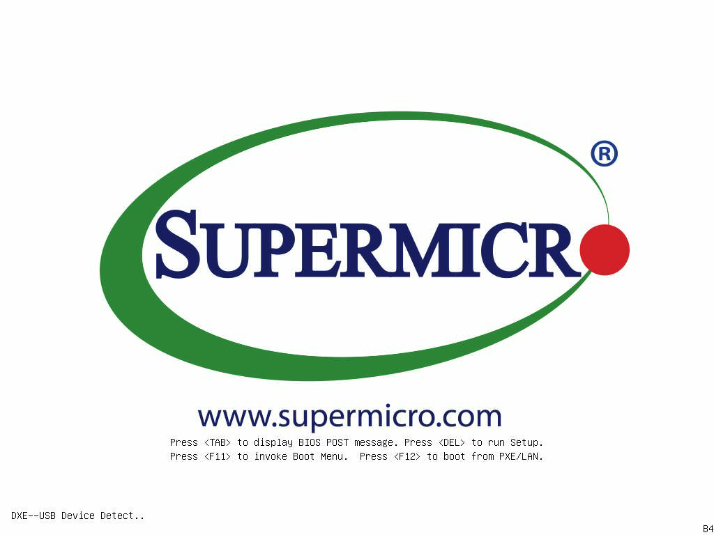 接続をし直し、今回は慎重にラック搭載する前にVGAと電源のみ接続して、通電。暫く何も画が出ず、これは厄介なことになったな・・と頭を抱えたが、暫くしたら見慣れたSupermicroのロゴがモニタに表示された。