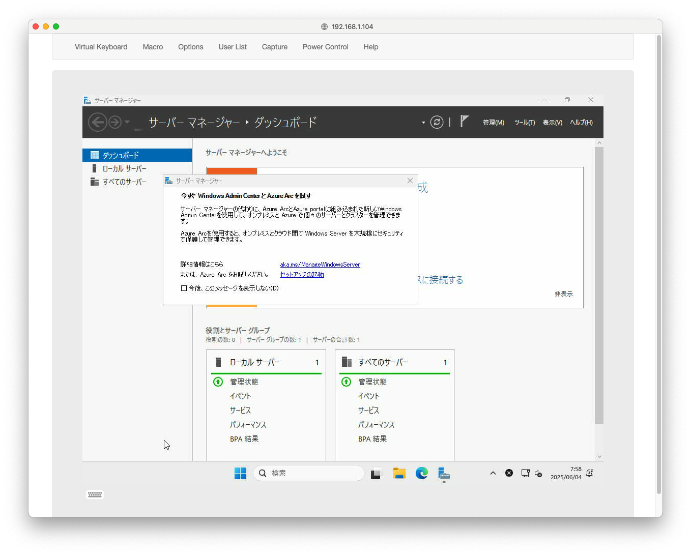 Windows Server 2025のインストールは完了したので、仕上げに入る。