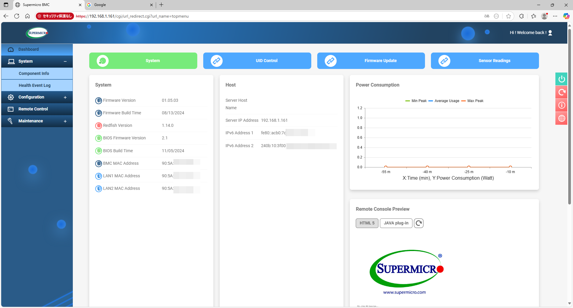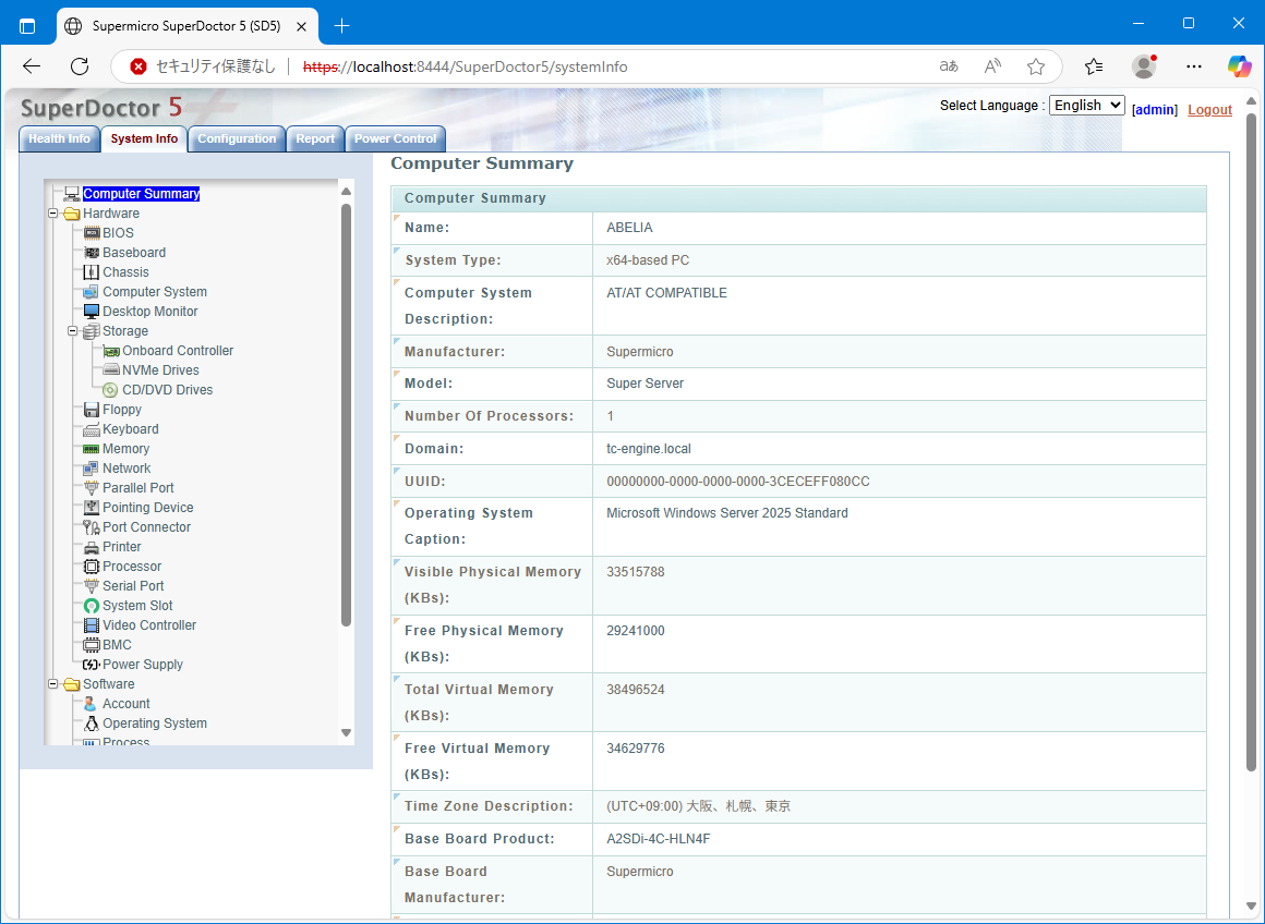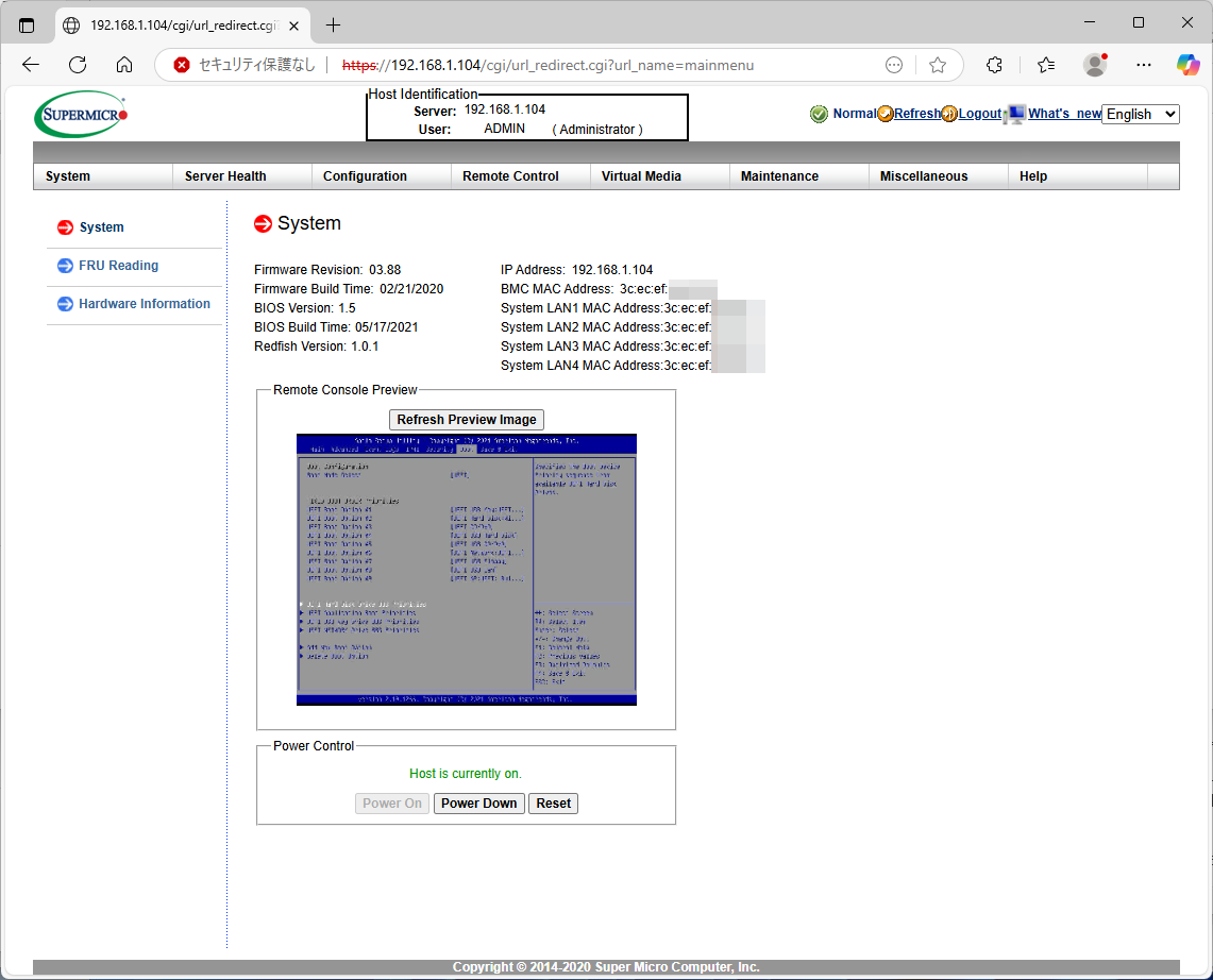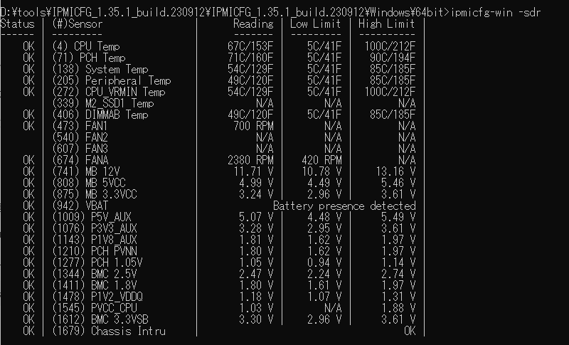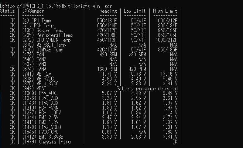 Supermicro謹製のIPMICFGと言うツールもあるので、ダウンロードして、ステータスを確認してみる。