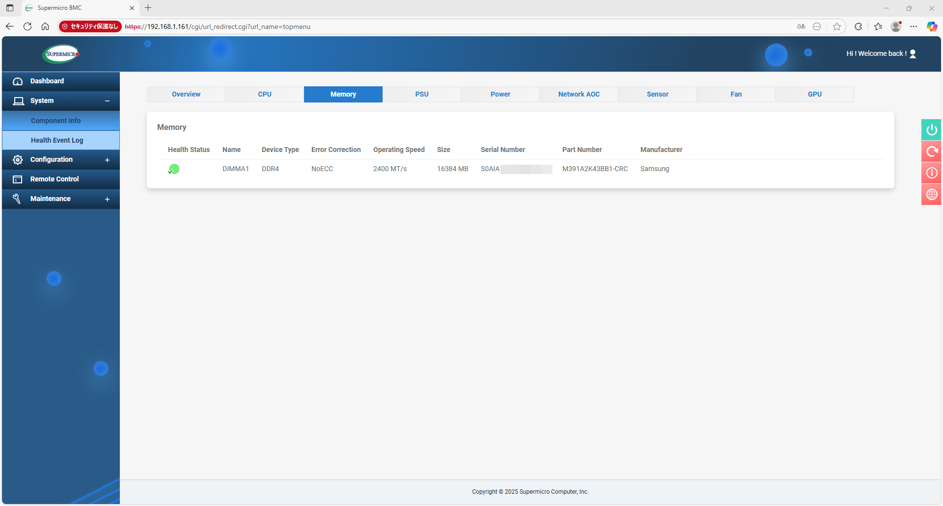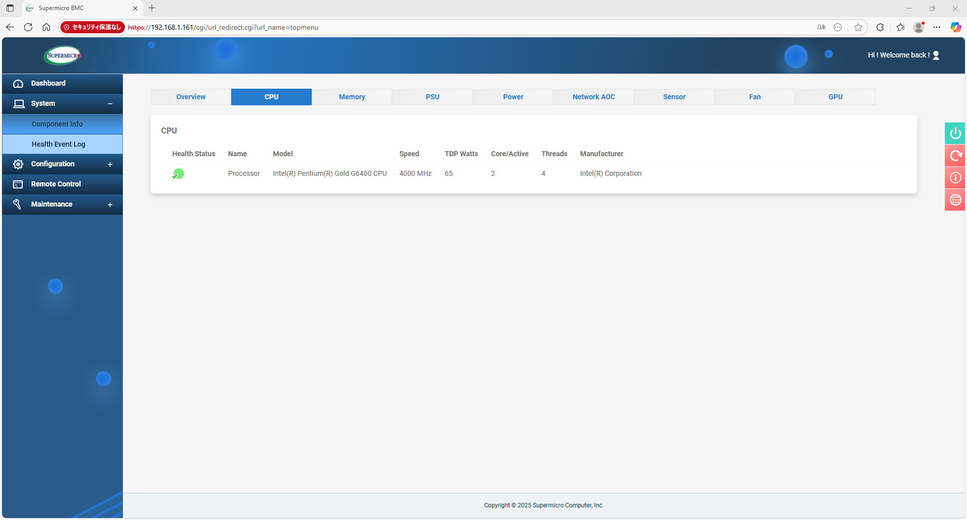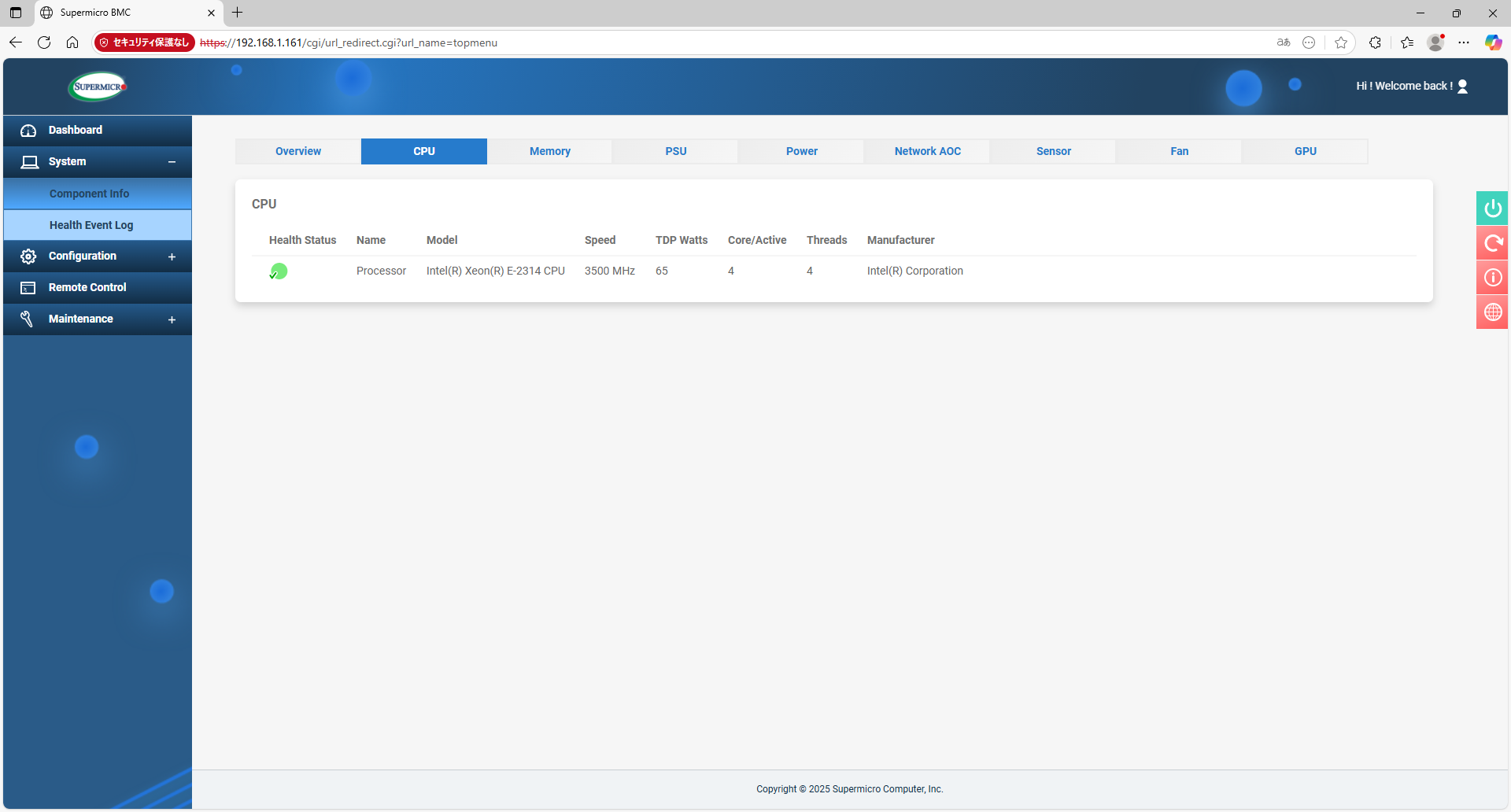 Supermicro謹製のIPMICFGと言うツールもあるので、ダウンロードして、ステータスを確認してみる。