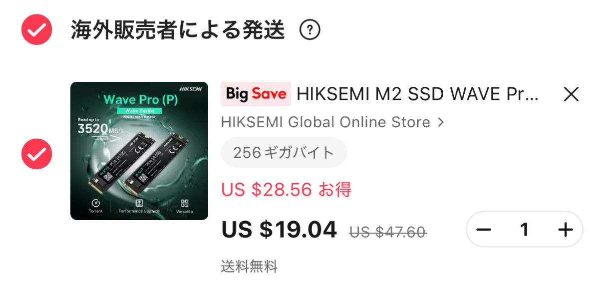 当初、国内代理店の扱い品をAmazonかヤフショで買おうと思っていたのだが、アリエクで安く売られているではないか。
