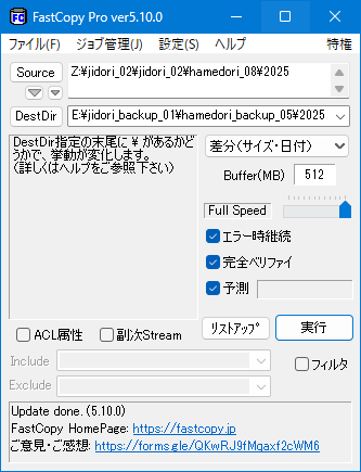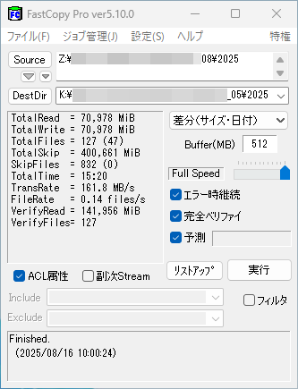 いつも通りの設定を施し、バックアップコピーを行う。