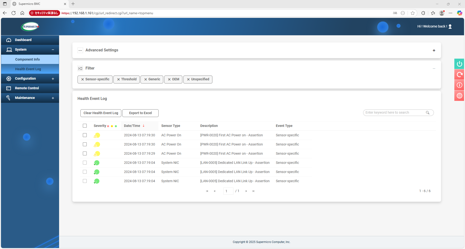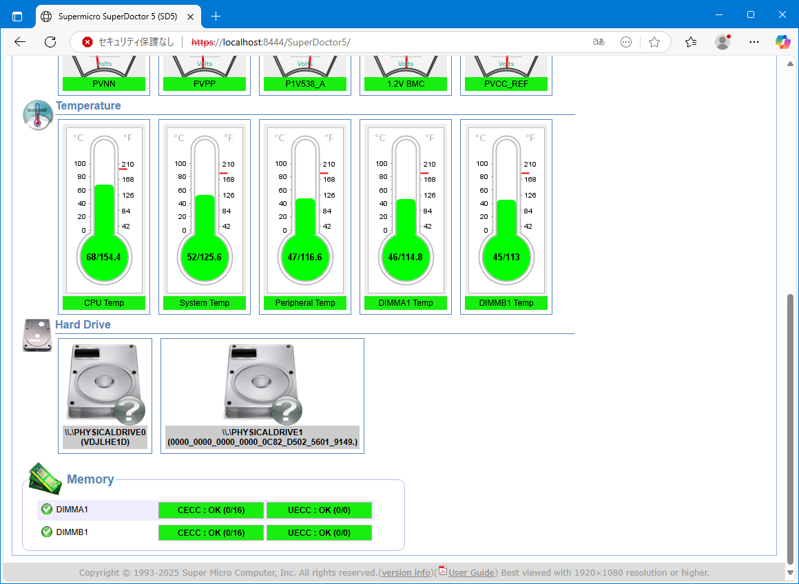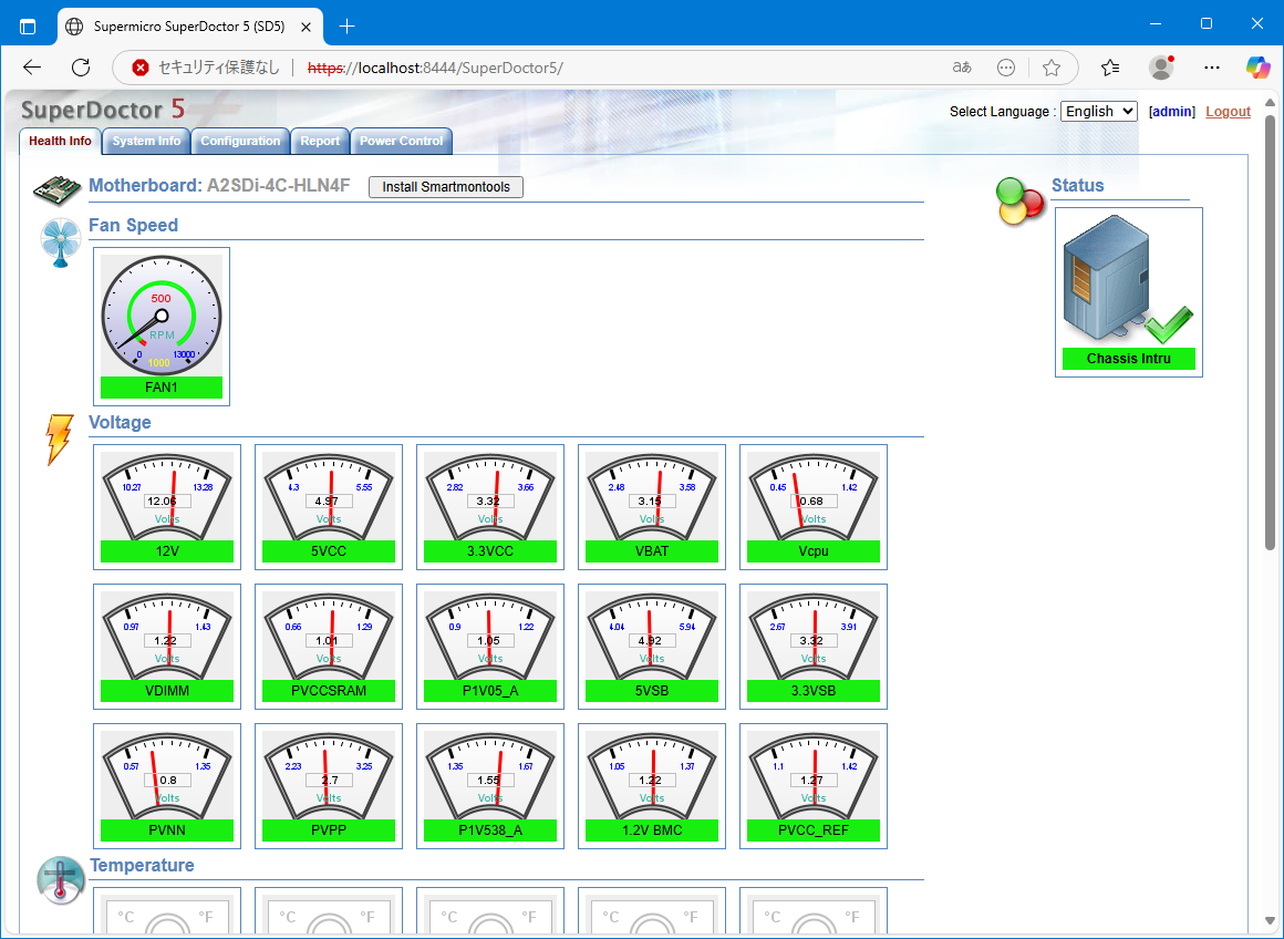 ちなみにこの現象、SUpermicroのマザーが高速回転のファンが実装されるサーバ筐体を想定していて、ファン低速異常検知の閾値が高めの回転数になっているために発生する。