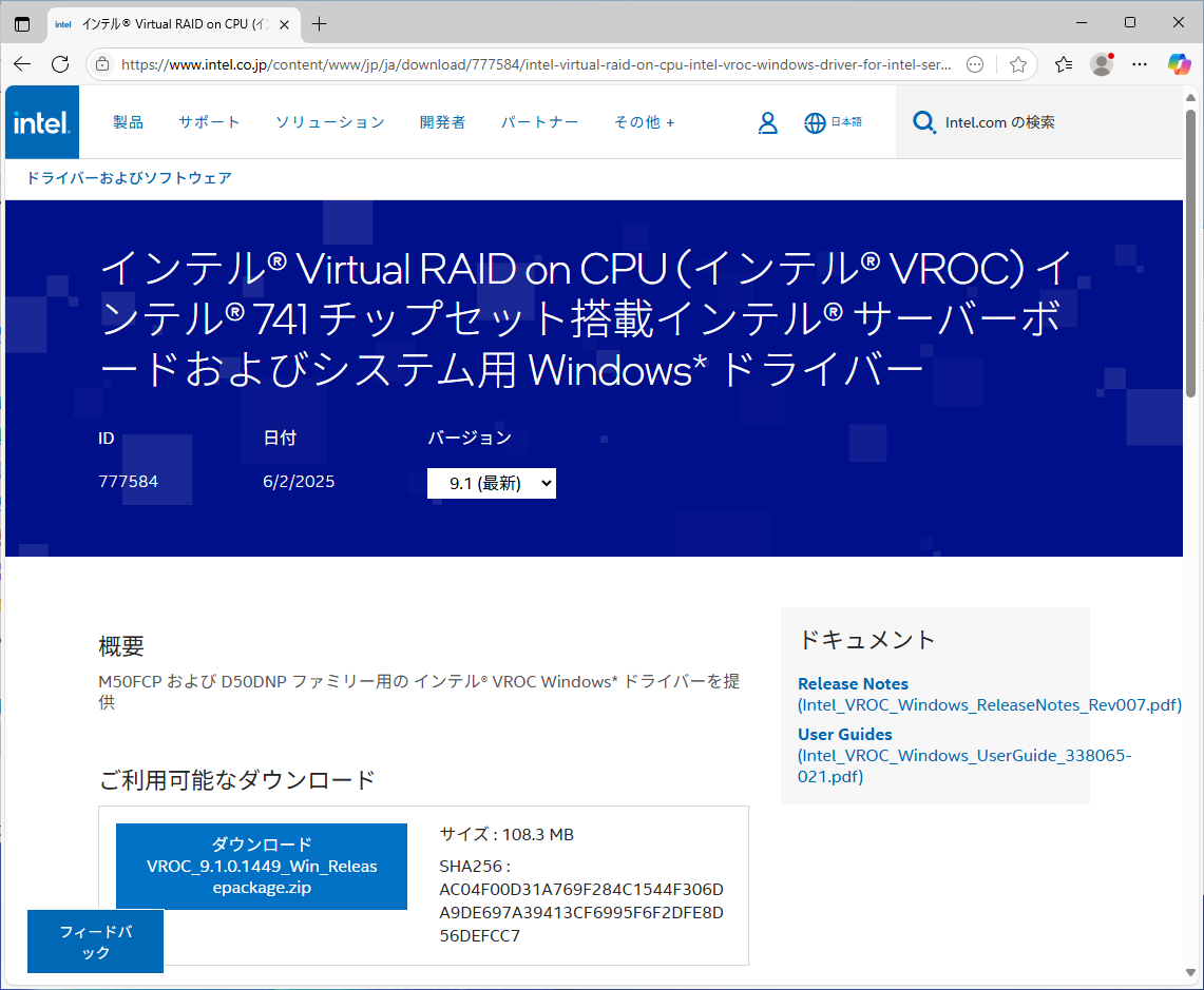 SupermicroのX14マザーボード付属の最新版は9.0だが、HPEのサイトでは9.1も公開されていて、Intelのサイトでもリリースノートが公開されている。