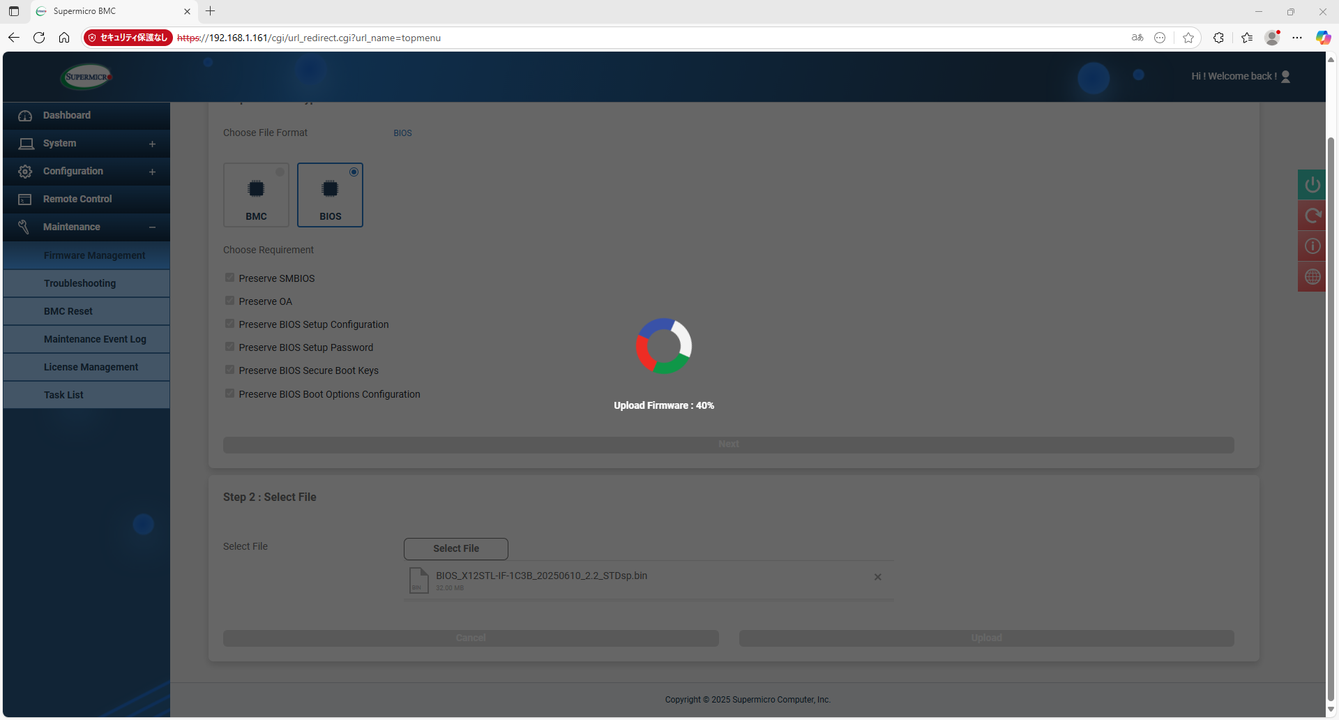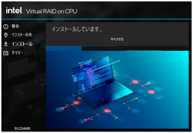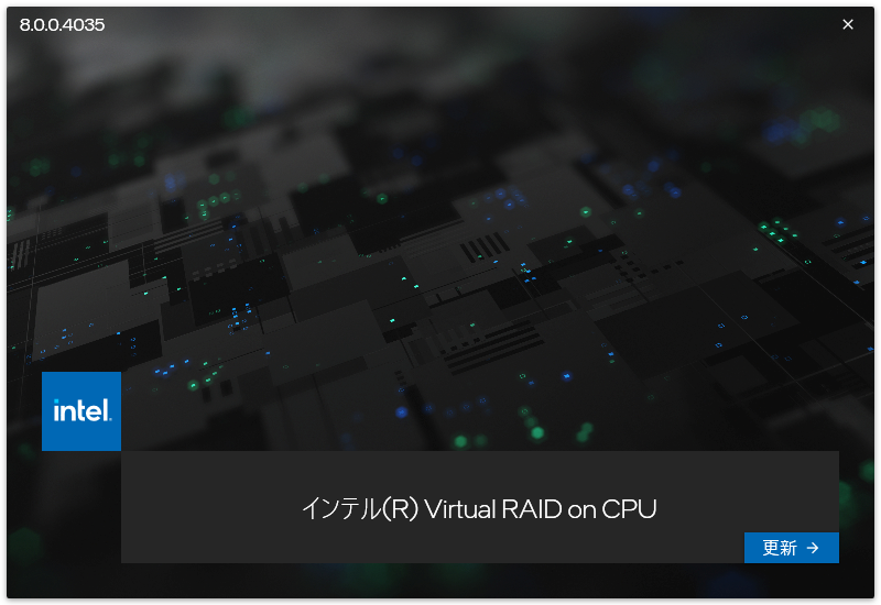 UEFI設定を有効にしてサーバを再起動。サインイン後VROC管理画面を起動したが、グルグルアイコンで起動完了しない。