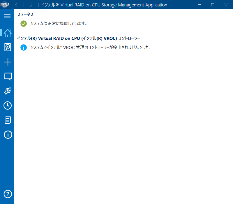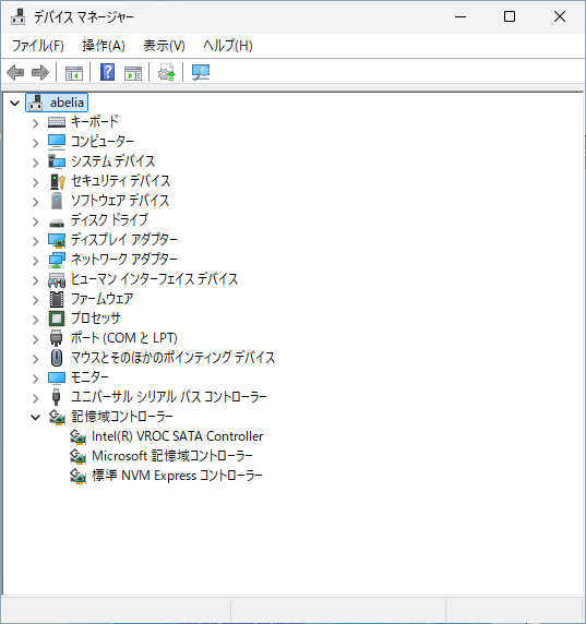 デバイスマネージャで見ても、記憶域コントローラにVROCの表記のあるデバイスも存在しない。