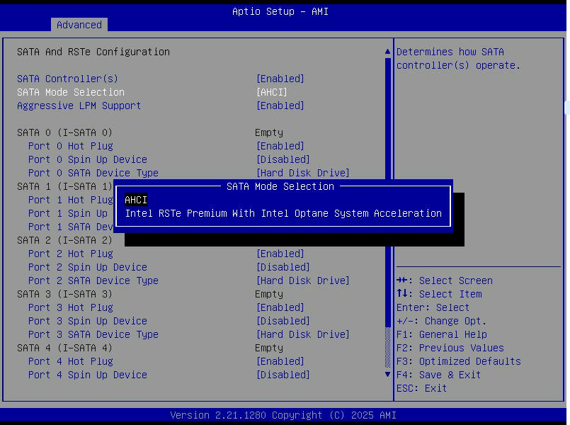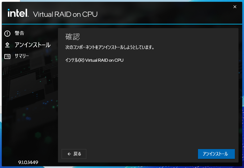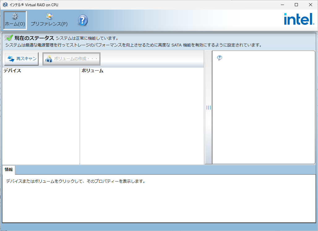VROC7.7の管理画面は、古いRSTeと同じUIで懐かしい。コントローラ不明のメッセージは表示されていないが、ドライブを実装していないのか、全て空の表示となっている。