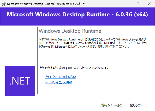 インストール後、サーバを再起動すると、.Net Framewarkの導入を促され、これも導入する。