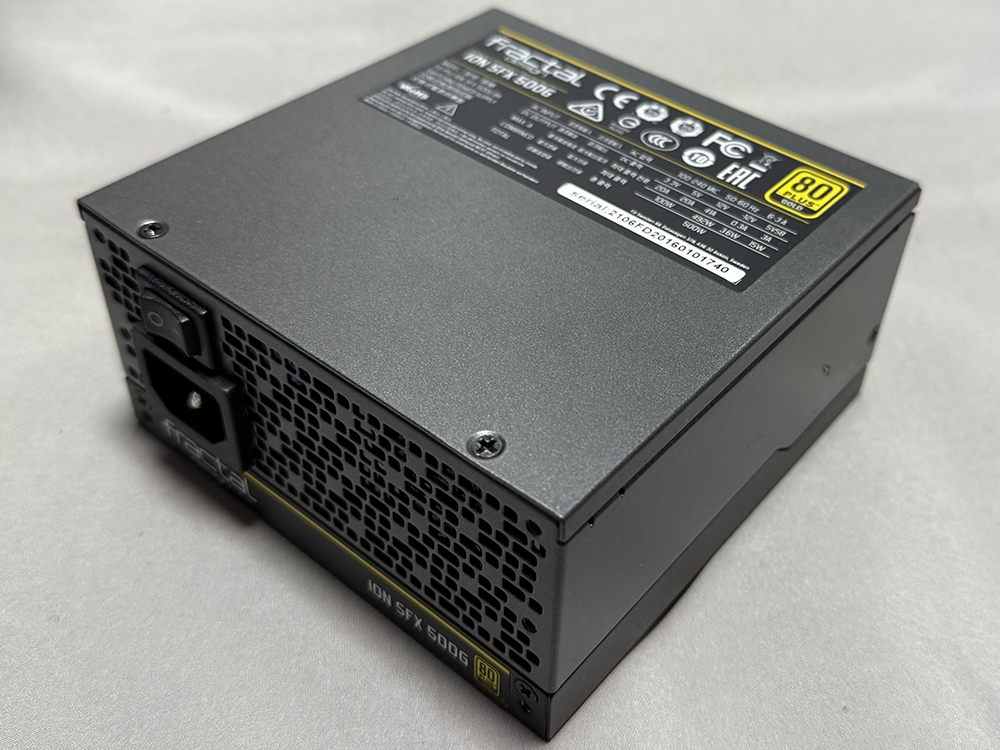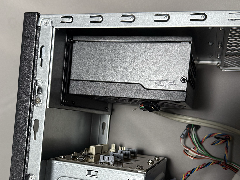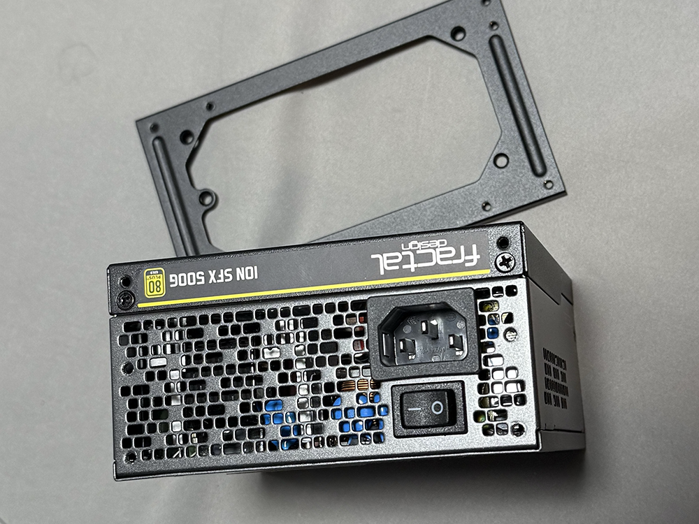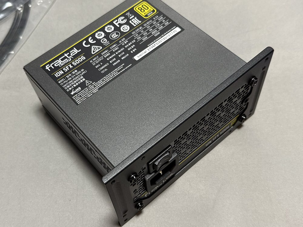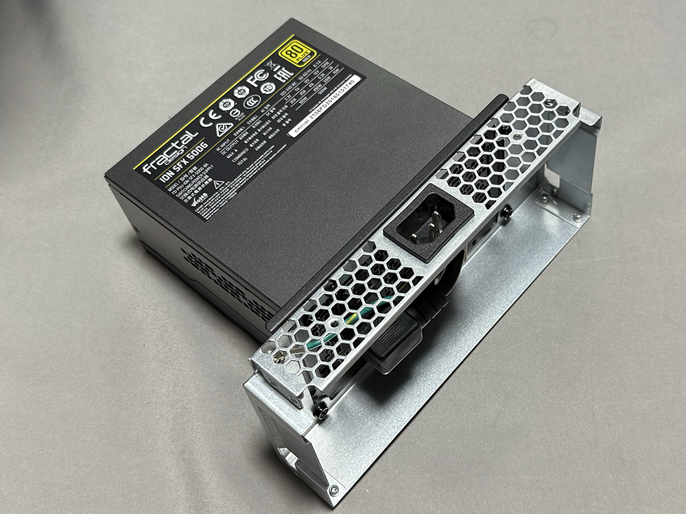 次のステップは電源ユニットの搭載。電源ユニットは死蔵していたFractalのSFX電源を使用。静音でフルプラグイン仕様だ。