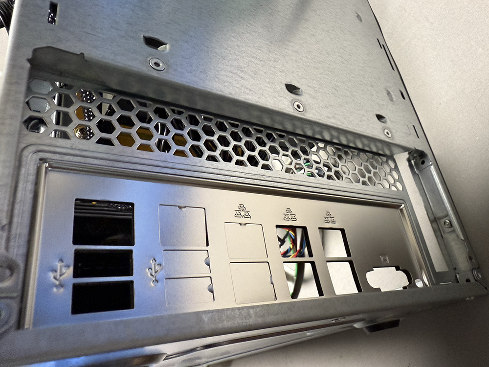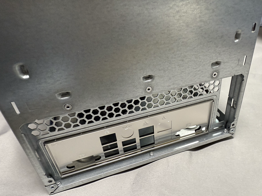 そしていよいよ、ケースへのマザーの組み込みを行う。リアパネルに穴を開け、マザーボードと一緒に組み込む。