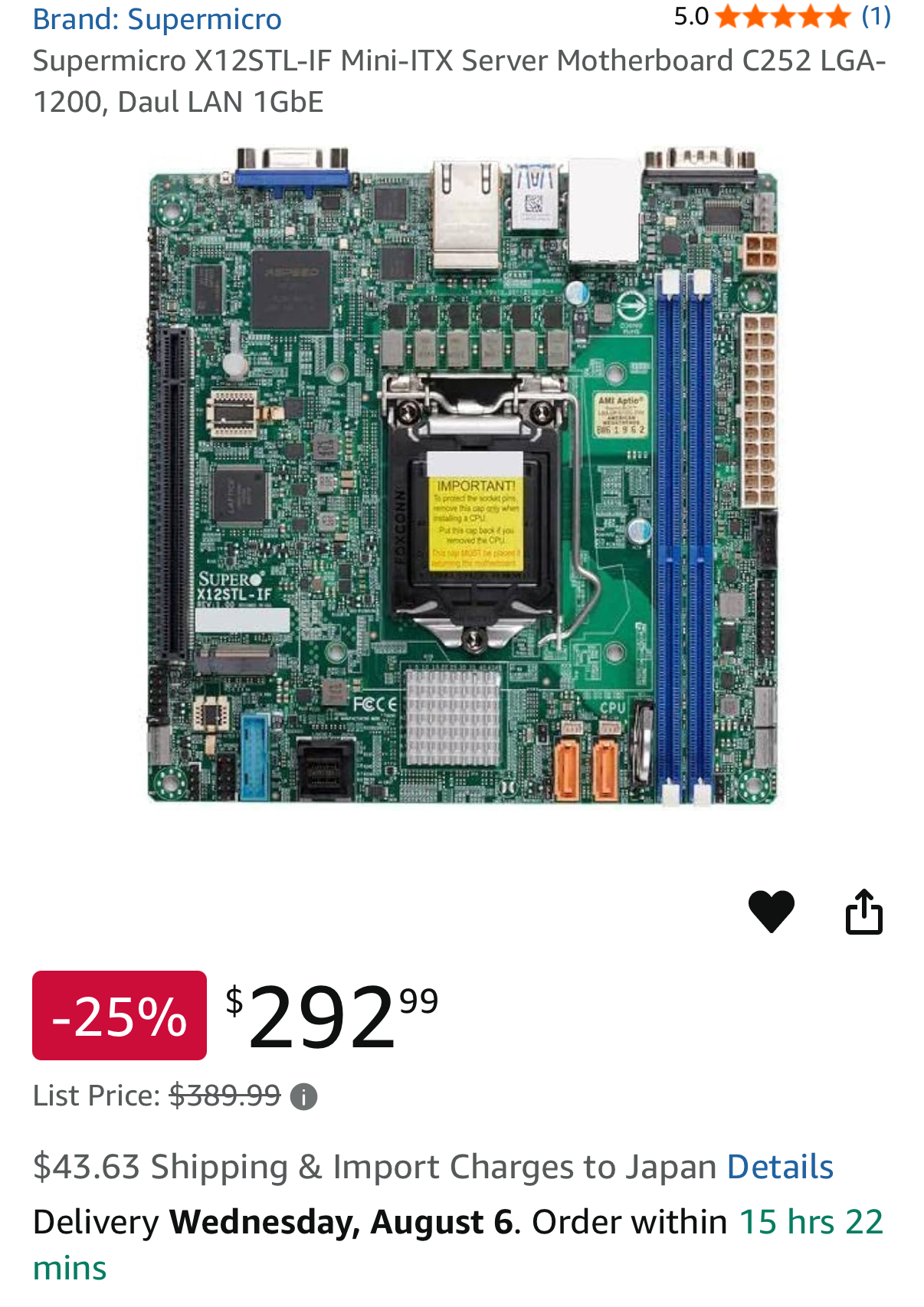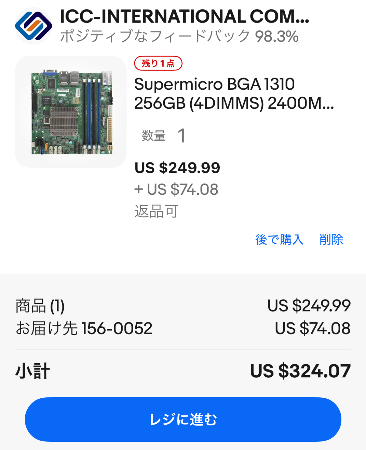 それではと、10th Coreのマザーに傾倒して、カゴに入れて決済の直前まで行ったのだが、そこで想定外の米国内の洲税が10%掛かることが分かり、一気に引いてしまった。