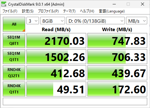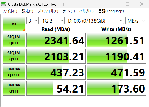 こちらも、起動用SSDにそれほど速度は求めないので十分ではあるが・・。