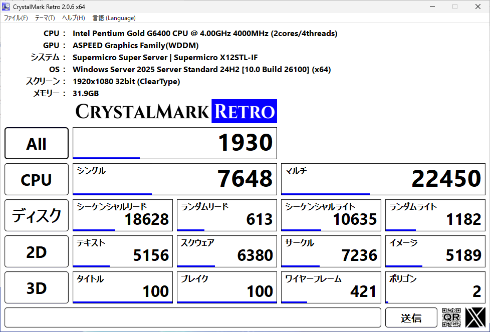 その後、ベンチマークを測定。