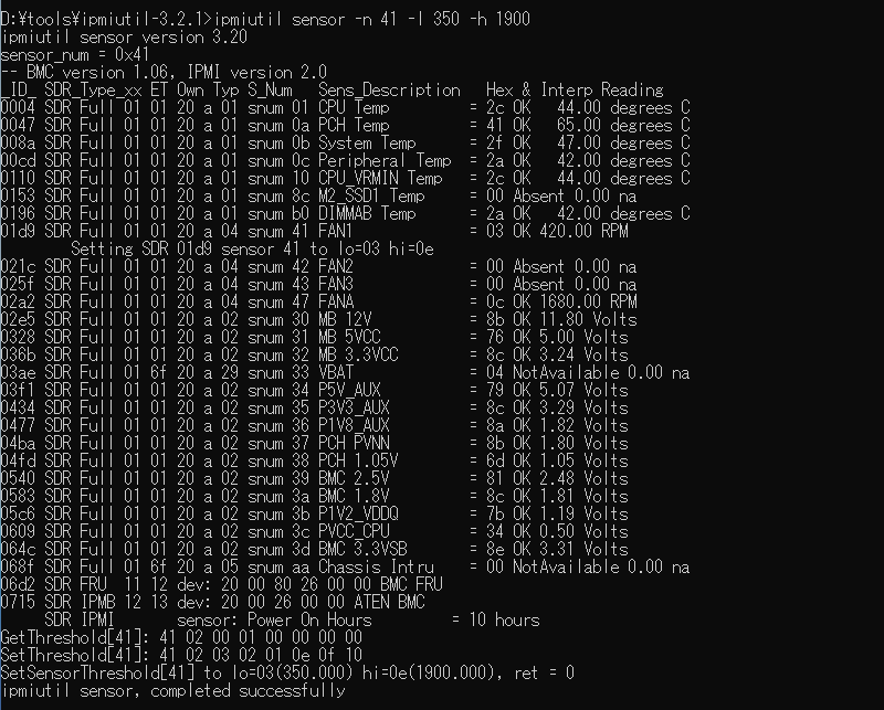ipmiutil sensor -n 41 -l 350 -h 1900