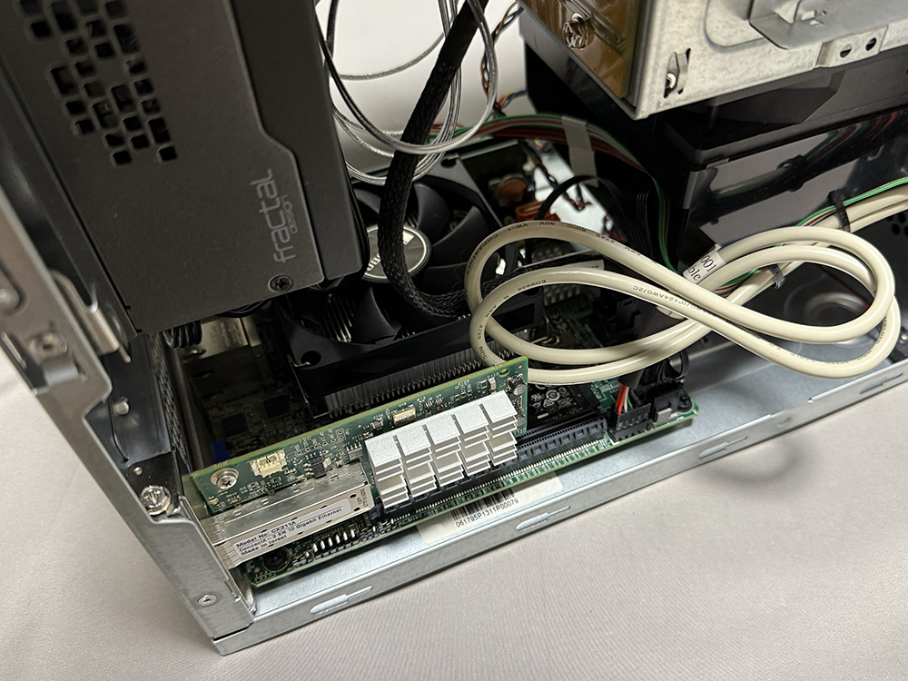 実装場所はPCIeスロットの近傍。はめ込むと、片端がマザーボードからはみ出る。これしか挿しようはないのだが、何だかイマイチだ。