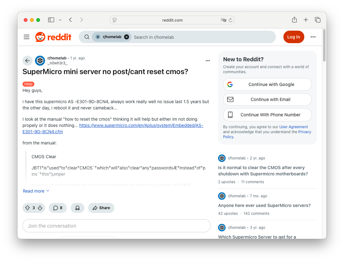 しかし、私も同様の症状です、と言う別の人が二人も居た。Supermicroマザーのあるあるのか?