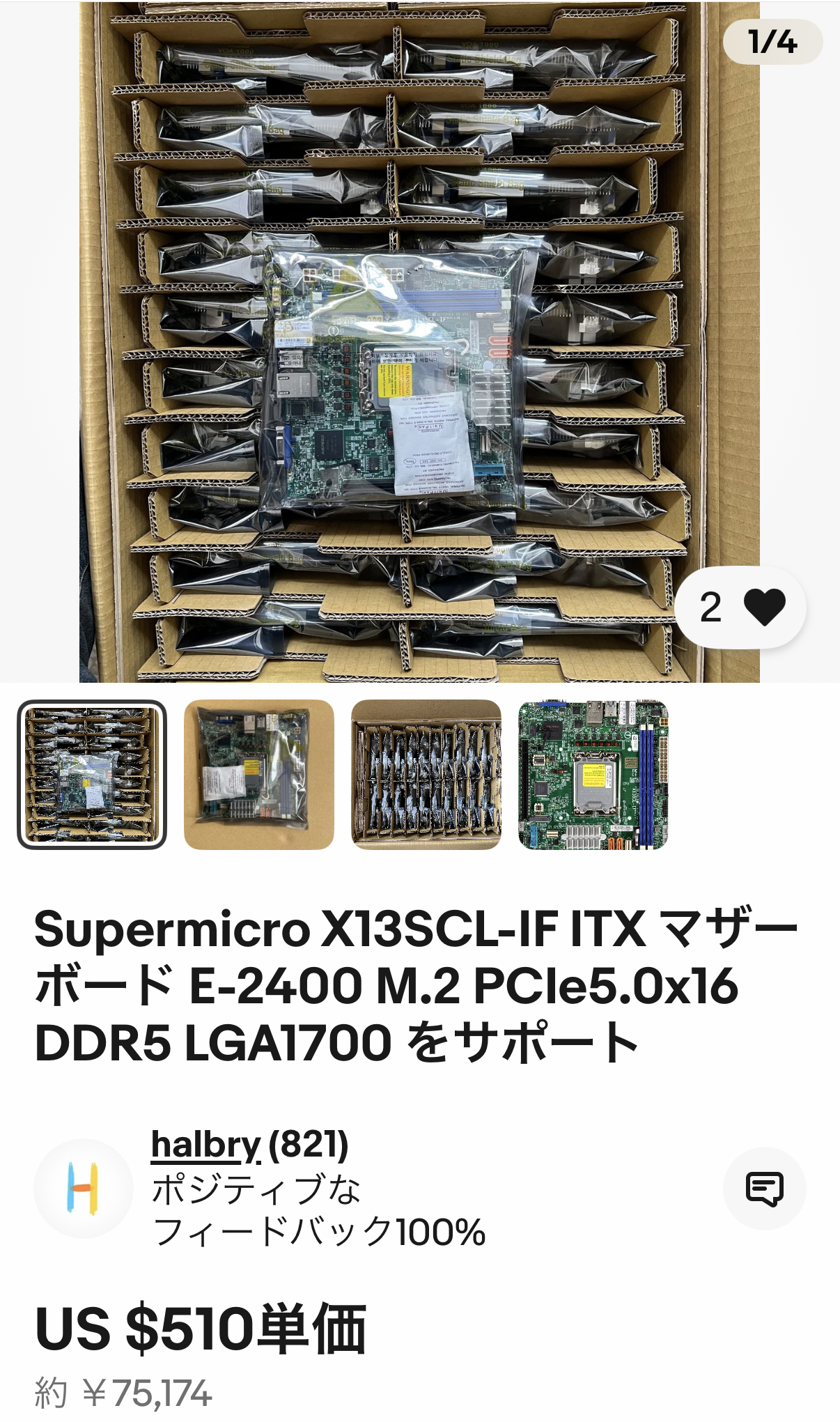 Supermicro マザーボード A2SDi-4C-HLN4F US$249.99+送料US$74.08(48,884円)@eBay(ICC-INTERNATIONAL)