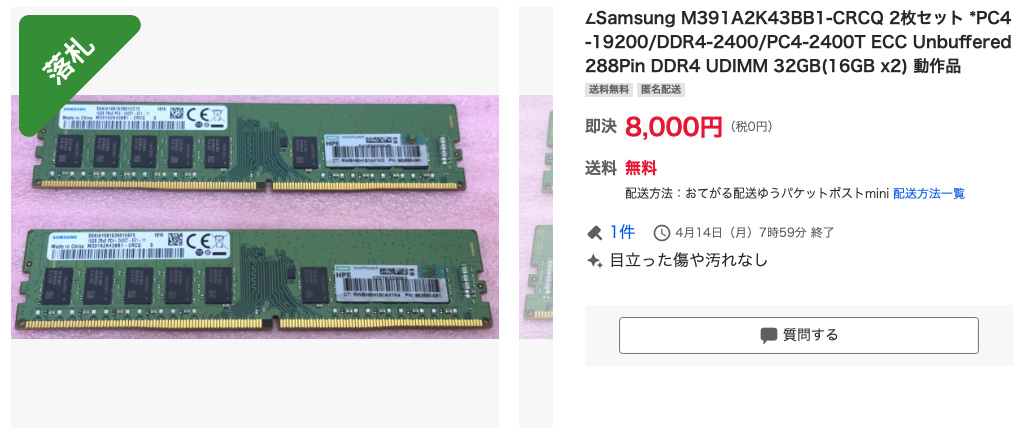 Samsung DDR4-2400 ECC UDIMM 16GB M391A2K43BB1-CRCQ ×2 7,500円@ヤフオク